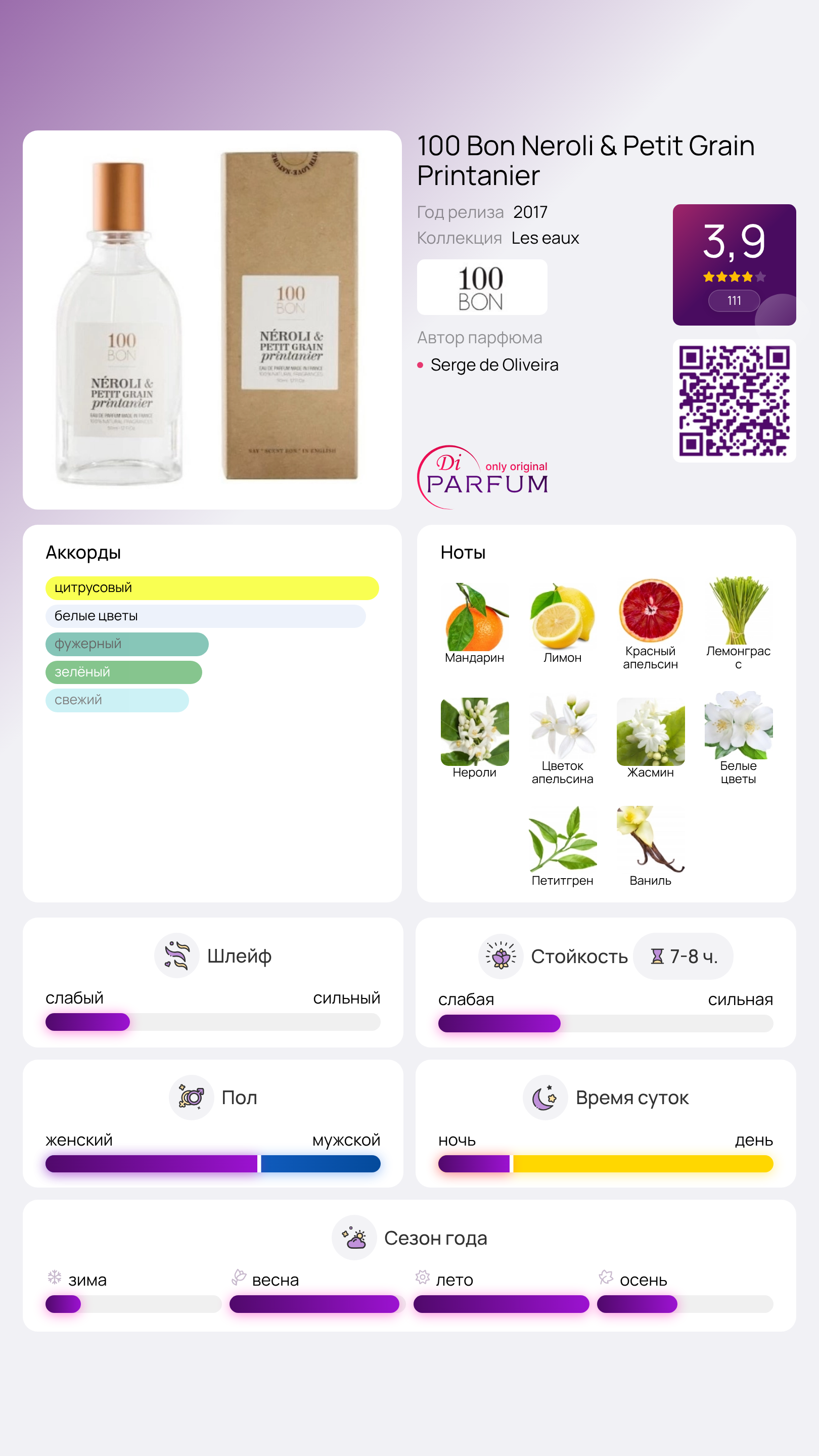 Этот парфюм идеально подходит для повседневного использования, он поднимет вам настроение и станет отличным акцентом в любом образе. Его освежающий и обволакивающий характер прекрасно подойдет как для теплых летних дней, так и для уютных вечеров.