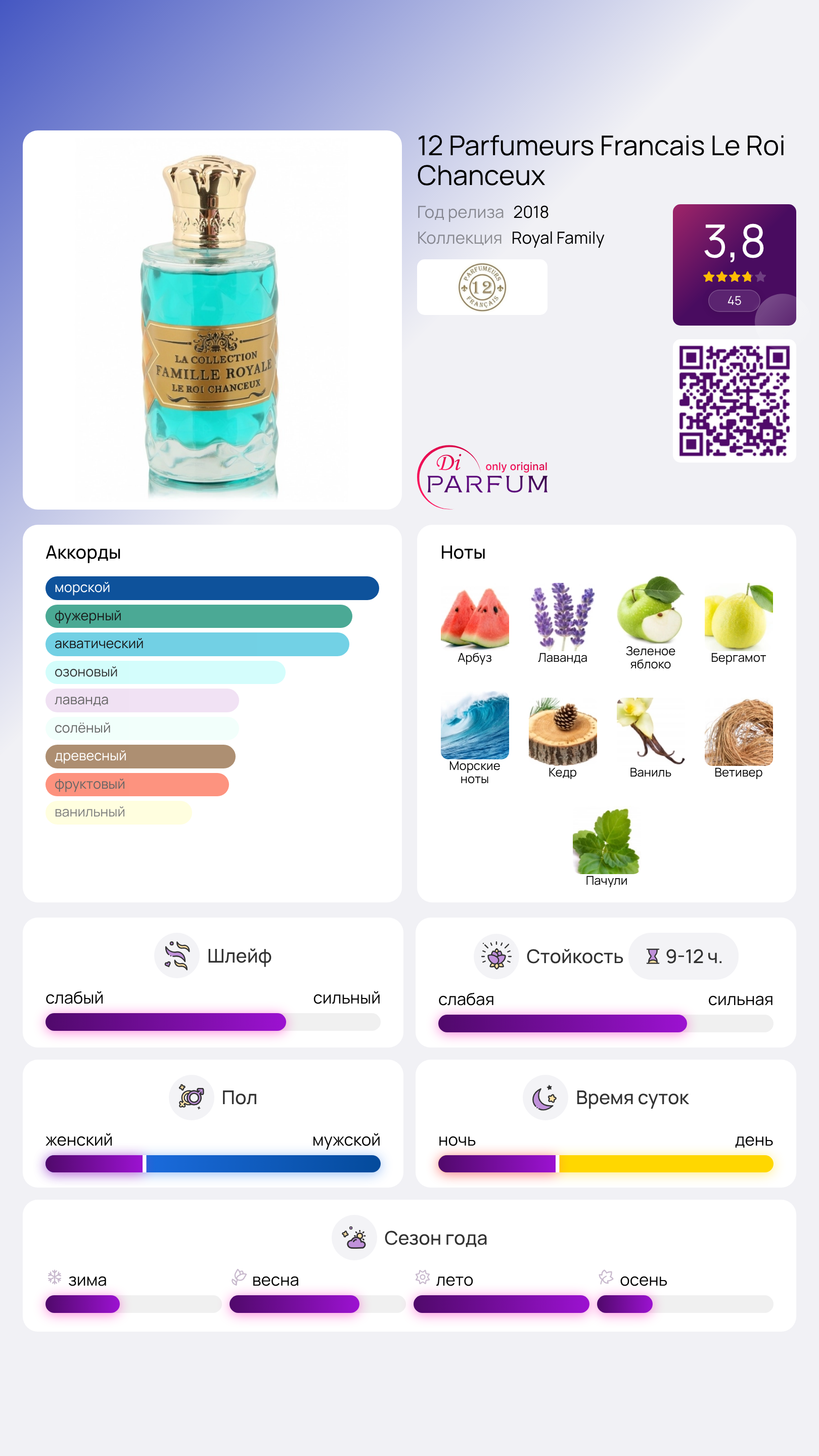 Le Roi Chanceux от 12 Parfumeurs Francais станет идеальным выбором для смелых и роскошных мужчин, стремящихся подчеркнуть свою индивидуальность.