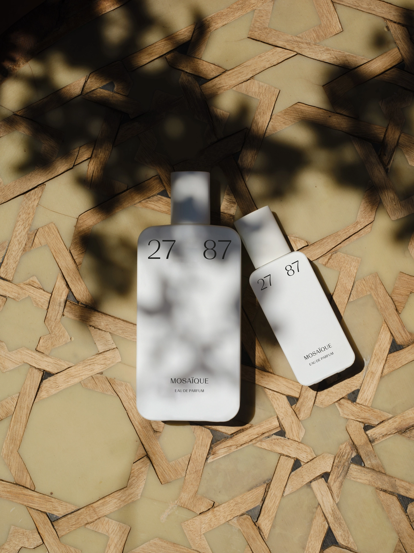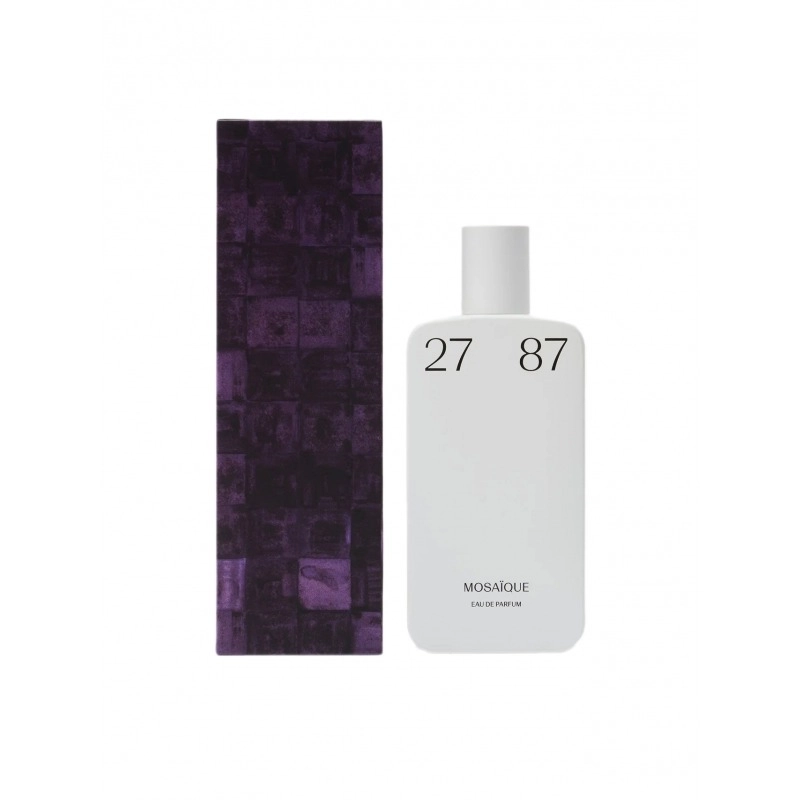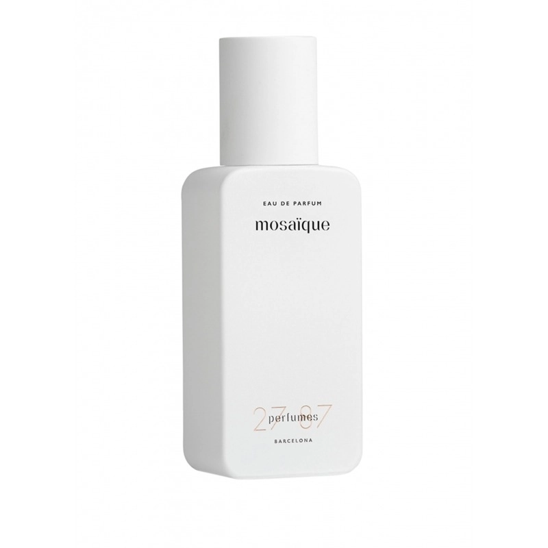 Композиция Mosaique от 27 87 Perfumes, выпущенная в 2023 году новым маркиром из Барселоны, известна своей чистотой в парфюмерии. Здесь используются только высококачественные ингредиенты без химических добавок, что делает каждый аромат уникальным и непредсказуемым. Данный парфюм стал частью тематической коллекции, а округлый белый флакон, выполненный в минималистическом стиле, служит незаметной обёрткой для своего содержимого, не конкурируя с ароматом внутри.
