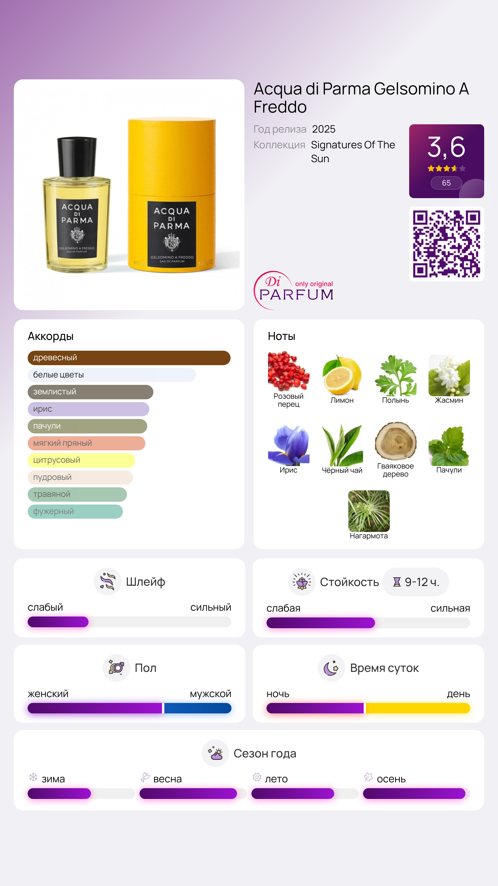 Gelsomino A Freddo вдохновляет и наполняет энергией, становясь идеальным выбором для любой ситуации, будь то повседневное использование или особое событие. Премиум качество ингредиентов и великолепная упаковка делают этот аромат отличным подарком для вашего близкого человека или настоящей находкой для себя.