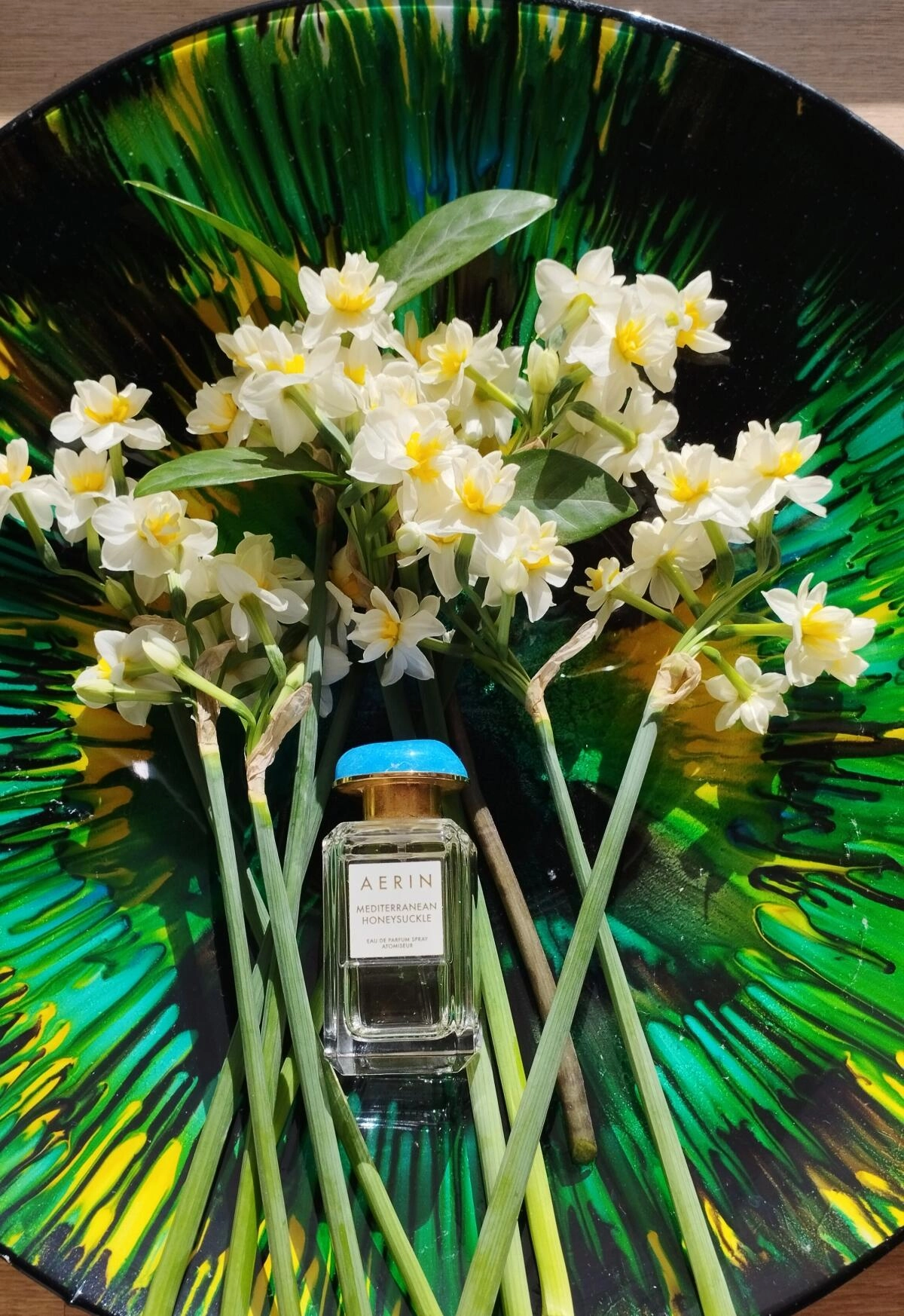 Прогулка по великолепному саду, где вечерний воздух напоен сладким ароматом цветов и спелых фруктов, создает первое впечатление о женском аромате Mediterranean Honeysuckle от Aerin Lauder. Это ощущение полностью оправдывается, так как жимолость, королева средиземноморских насаждений, становится главной в этом произведении.