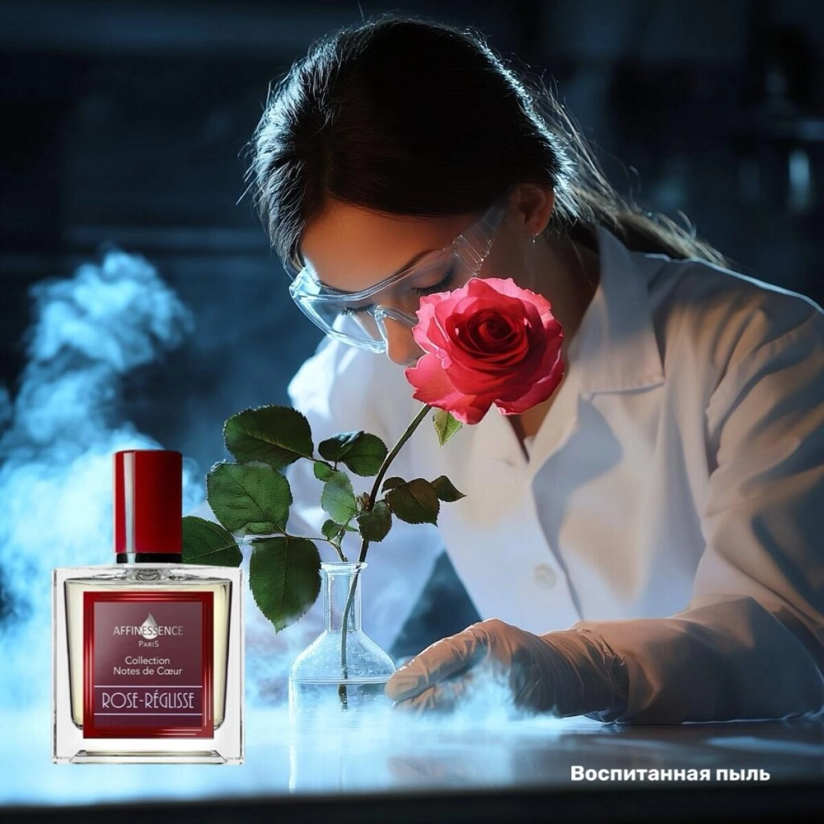 Rose-Reglisse от Affinessence – это цветочный аромат, созданный как для женщин, так и для мужчин. Этот парфюм был запущен в 2024 году, и его автором является известный парфюмер Натали Лорсон. В верхней ноте раскрывается анис, который придаёт аромату свежесть и загадочность. Сердце композиции составляют ноты граської розы, личи и фиалки, создавая утончённый и изысканный букет. Завершающие аккорды представляют собой гурманское звучание, добавляющее уют и чувственность.