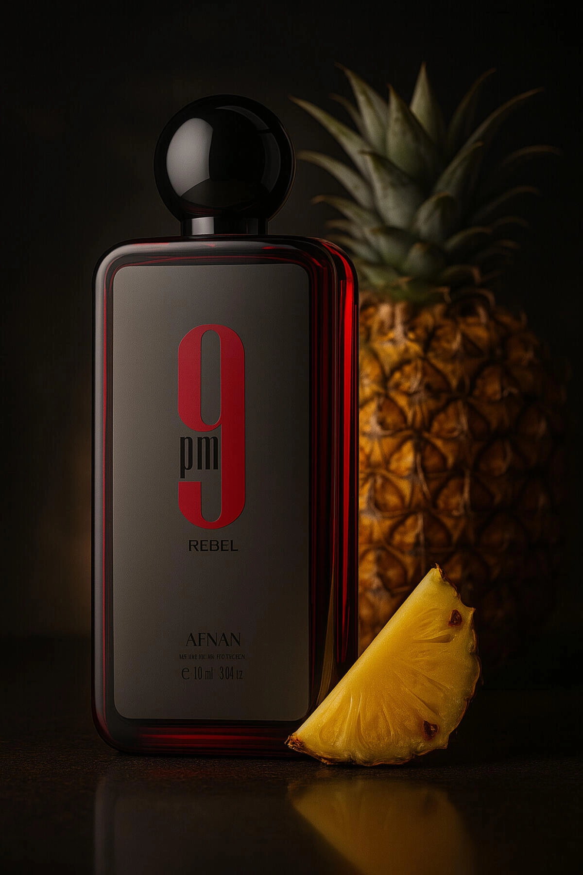 9 PM Rebel от Afnan — это ароматическая фруктовая композиция, предназначенная как для женщин, так и для мужчин. Этот новый аромат был представлен в 2024 году, а его создателем стал парфюмер Gaël Montero. В верхних нотах вы почувствуете освежающий ананас, яблоко сорта Granny Smith и мандарин, что мгновенно создаст яркое и фруктистое настроение.