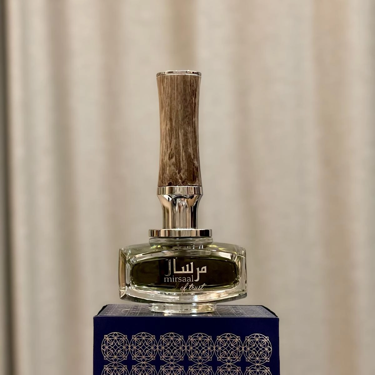Настоящая восточная сказка предстает перед нами в изысканном флаконе AFNAN Mirsaal Of Trust. Этот оригинальный сосуд с длинным колпачком, украшенным натуральным деревом, отражает уникальность парфюмерной композиции, подчеркивая древесный аккорд в ее базе.