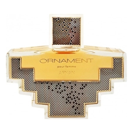 Особенность дизайна парфюма Ornament Pour Femme от Afnan заключается в его сложной геометрической форме, которая напоминает элементы удивительной мозаики. Так же сложноструктурная и многослойная является и восточная композиция. С яркими цветочными и фруктовыми нотами, аромат плавно переходит от легкой верхней ноты к более насыщенной базе, в которой преобладают мускус и амбра. Ближе к основанию запах Ornament Pour Femme насыщается, становясь глубоким и стойким, образуя завораживающий шлейф.