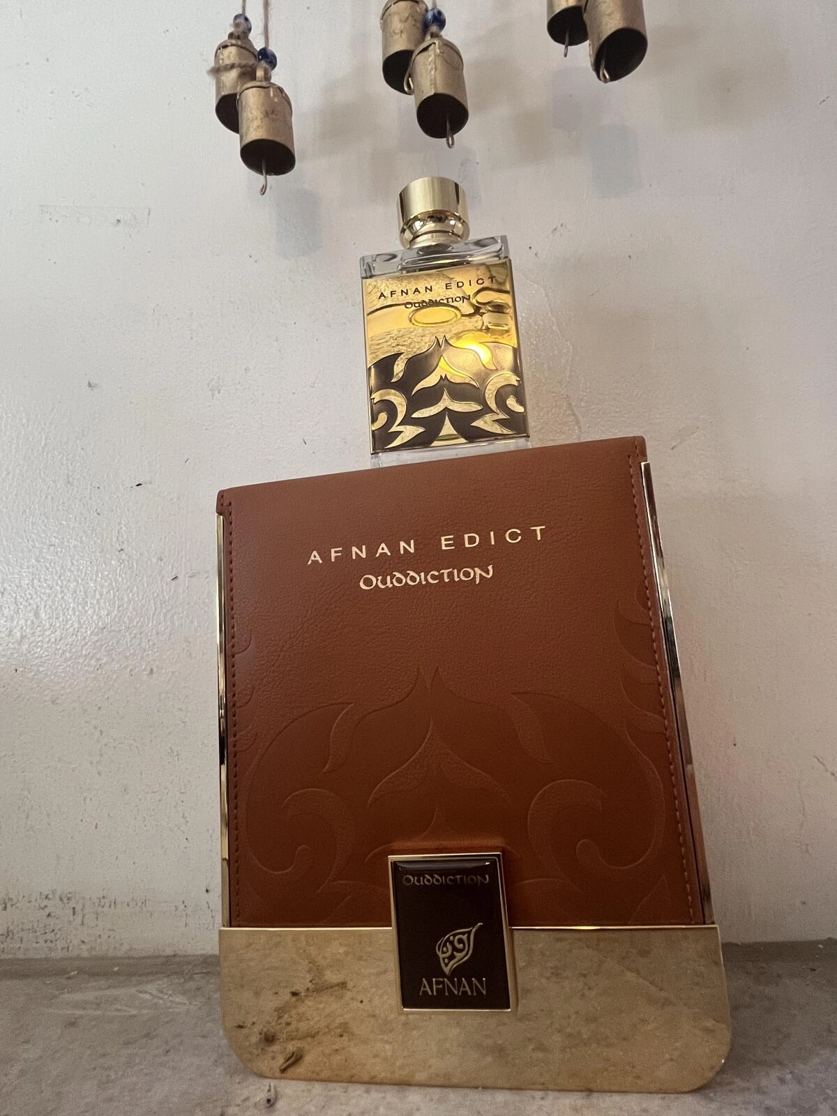 Шлейф аромата обволакивает кожаной текстурой, расшитой экзотическим палисандром, травяными пачулями, землистым ветивером и солоноватой амброй. База воспринимается как кожаный ликер. Ouddiction от AFNAN была впервые представлена на выставке в Дубае в 2022 году и стала ярким примером парфюмерного искусства арабского бренда.