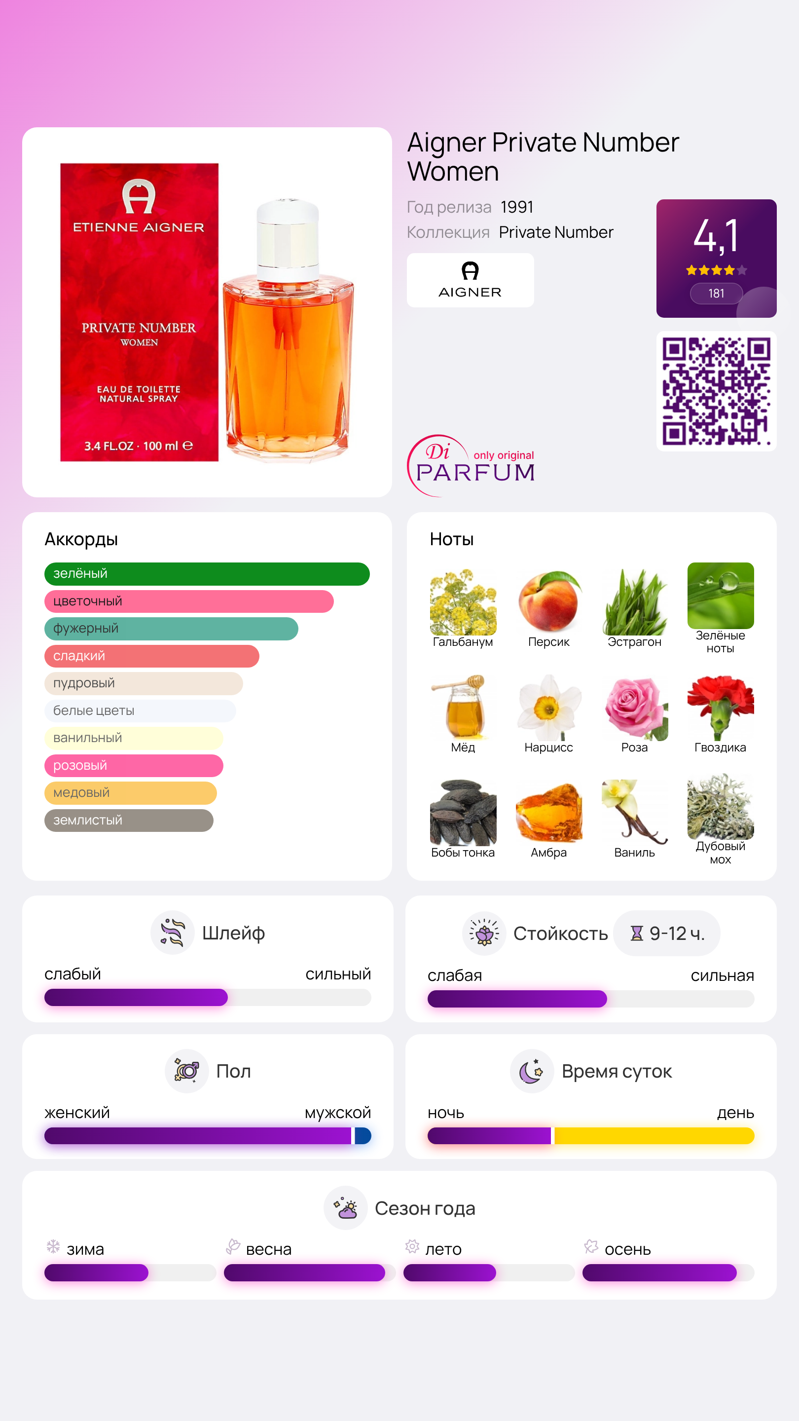 Бренд Etienne Aigner представил аромат Private Number Women, обладающий цветочно-фруктовым букетом, еще в 1991 году. Хотя мода тех времен может показаться смешной, качество и утонченность созданных ароматов остаются востребованными и привлекательными по сей день.
