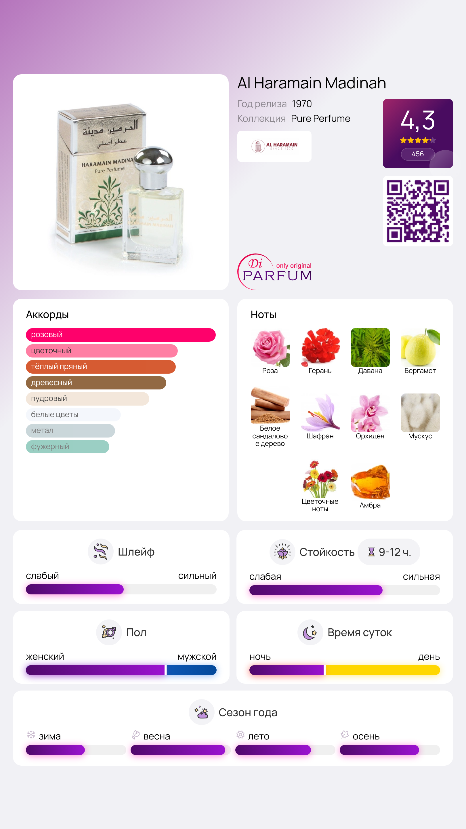 Завершает аромат обволакивающее облако из чувственного сандала, добавляющее нотку благородства и долгого звучания. Al Haramain Madinah представлен в стильном флаконе, крышка которого отсылает к силуэту исламского храма, что подчеркивает его уникальность и эстетику.