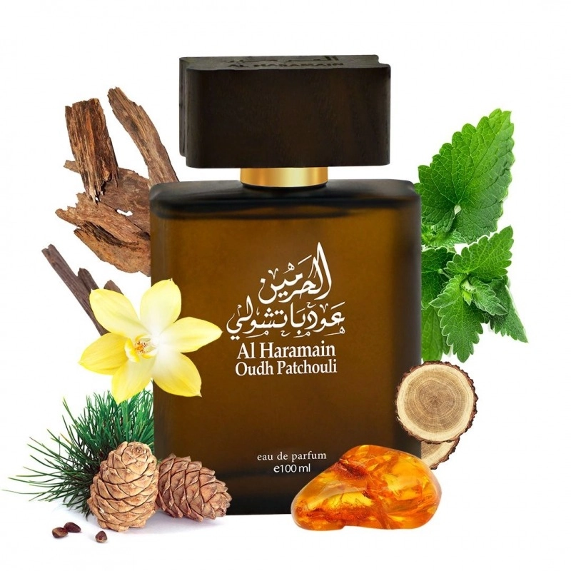 Поддыхающий копченый холод древесных нот обогащен смолистой свежестью кедра. Мистический уд получает новый оттенок благодаря контрасту солоноватой амбры и сладкой ванили. Уютный аромат Oudh Patchouli от Al Haramain излучает ощущение безграничного счастья и был представлен известным брендом из ОАЭ на выставке в Каннах в 2019 году.