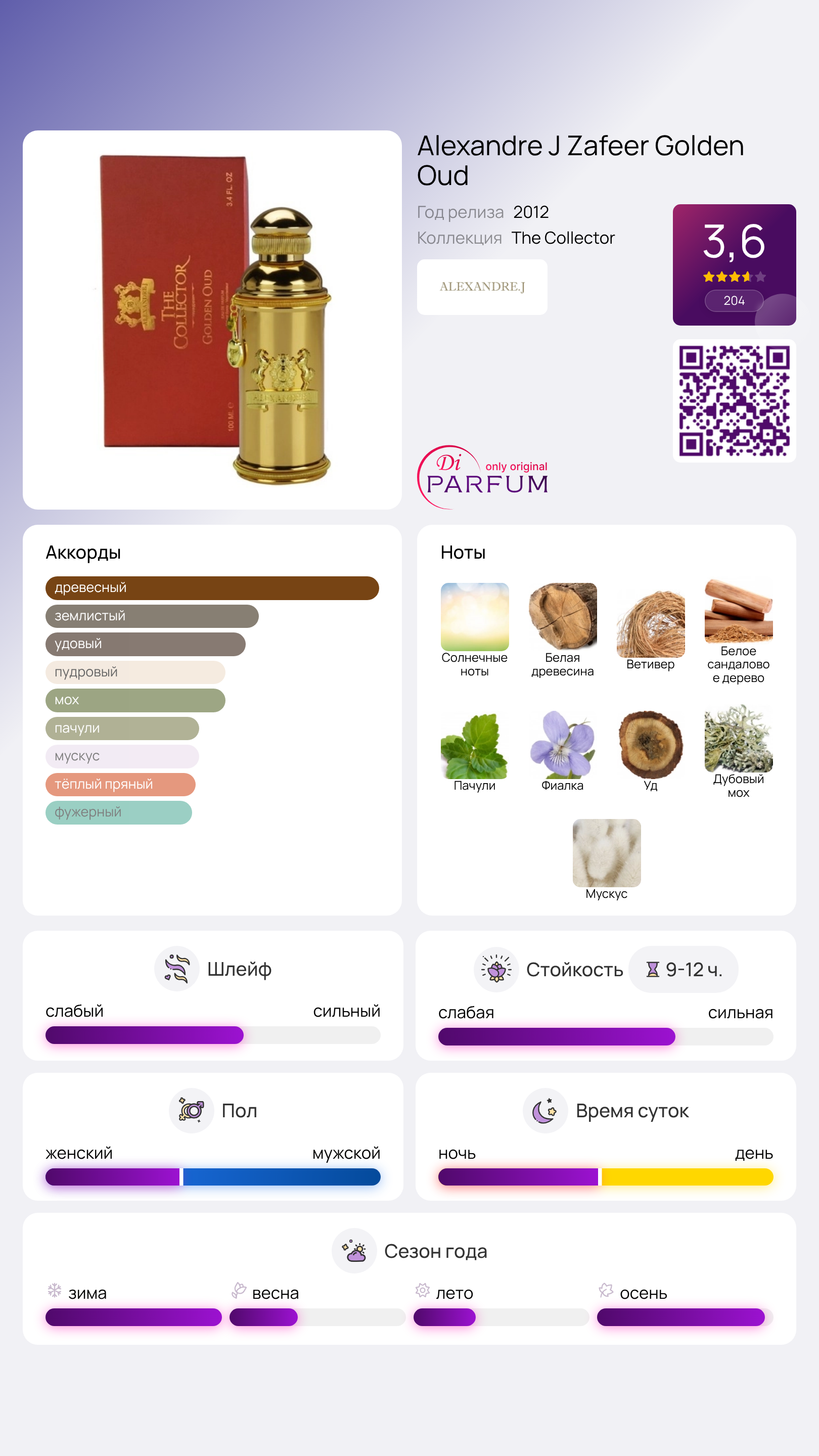 Golden Oud не просто аромат, а настоящая композиция, которая объединяет в себе восточную атмосферу и французскую барочную архитектуру. Коллекция из шести ароматов этой линии вдохновляет на путешествия, наполняя сердце теплом и привнося разнообразие в каждодневную жизнь. Этот парфюм подходит для тех, кто ценит уникальность и стремится к новым ощущениям.