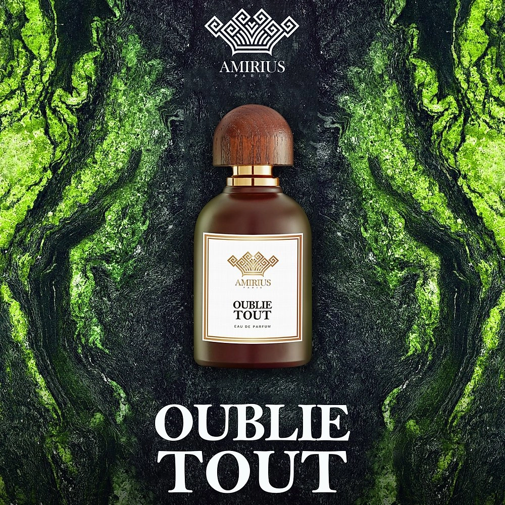 Мистическая база Amirius Oublie Tout содержит тлеющий янтарный ладан и крепко фиксирующий аромат бензоин, который обрамляется лактоновыми акцентами сандала и горьковатыми нотами сухого пачули.