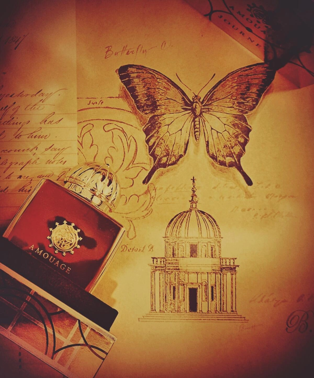 В центре композиции проявляется очарование мягкой мимозы, сладкого меда и свежего кедра, а завершают этот удивительный коктейль ноты табака, ванили, гармонты, остро-сладкого шафрана и соблазнительного мускуса.