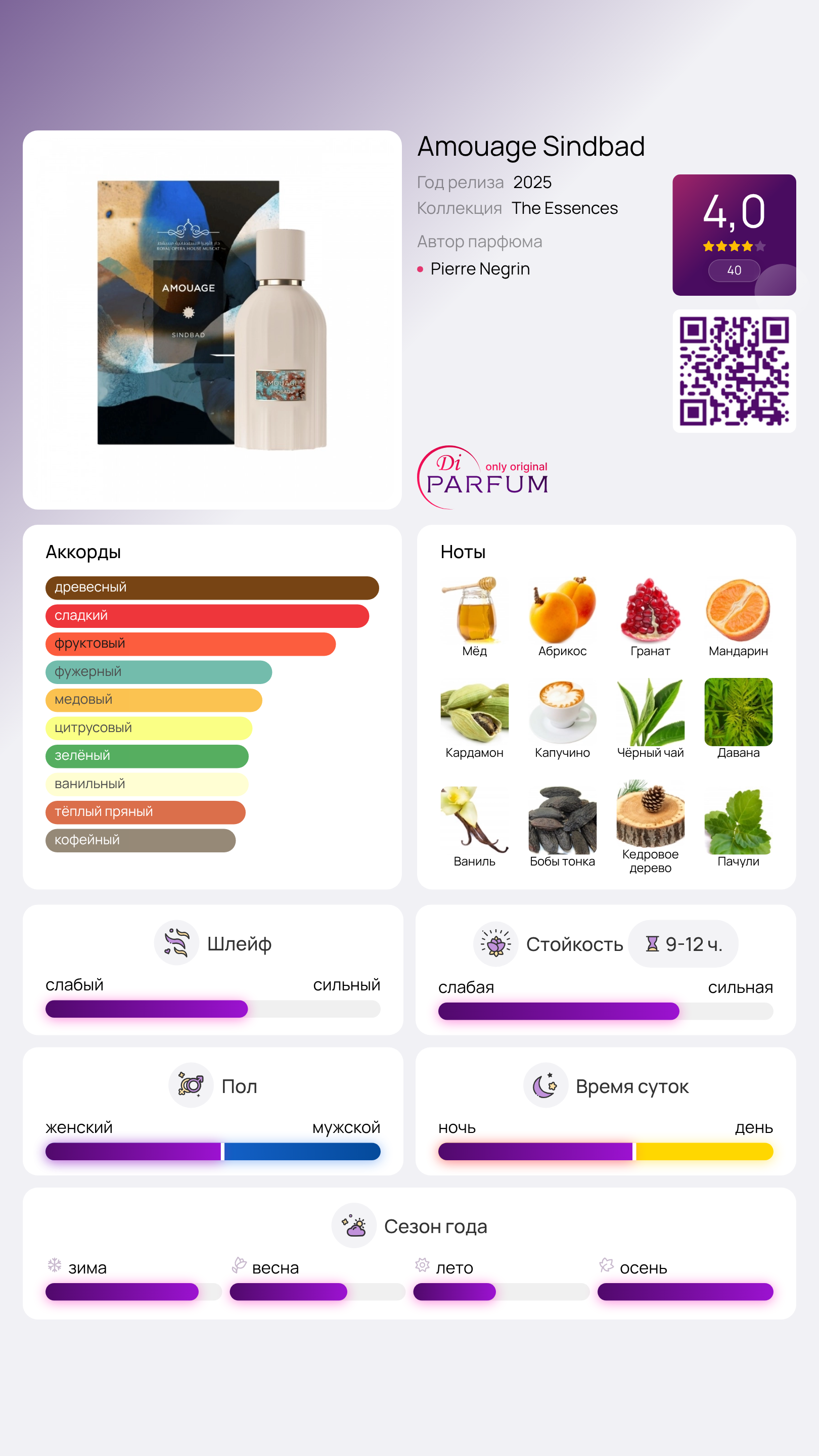 Sindbad от Amouage — это древесно-пряный аромат для мужчин и женщин, который был представлен в 2025 году. Созданный парфюмером Пьером Негрино, этот аромат мгновенно привлекает внимание своим уникальным сочетанием нот.