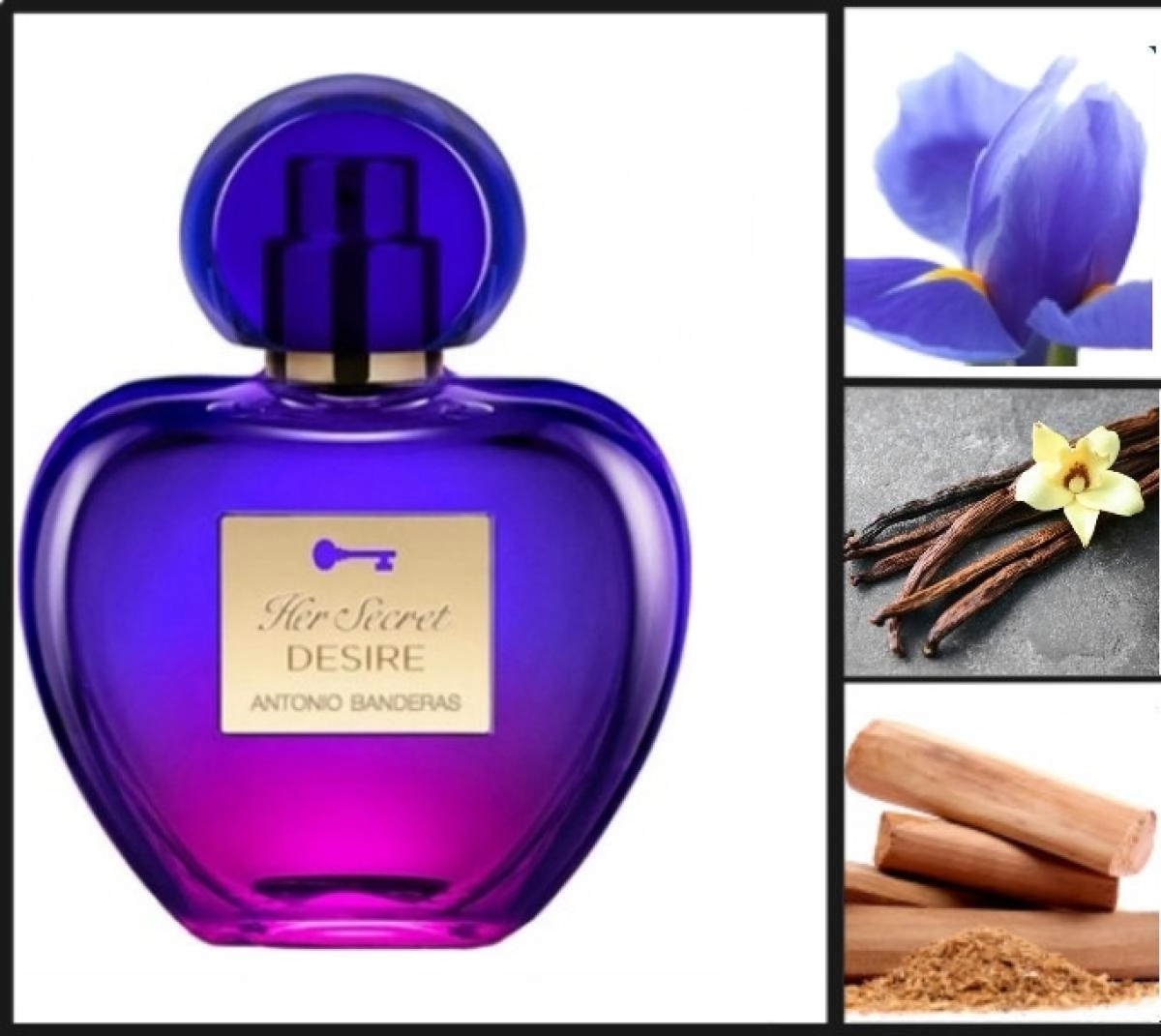 Его парфюмерная линия включает серию под названием The Secret, среди которой выделяется Her Secret Desire. Этот аромат – это та самая заветная мечта, которую должен уметь распознать, понять и, что важнее всего, осуществить настоящий мужчина. Принадлежность этого парфюма к восточной цветочной группе уже говорит о его неповторимости. Его интенсивный и чувственный характер вскрывается с первых нот, в которых гармонично переплетаются ароматные ягоды земляники, грейпфрут и листья горького апельсина.