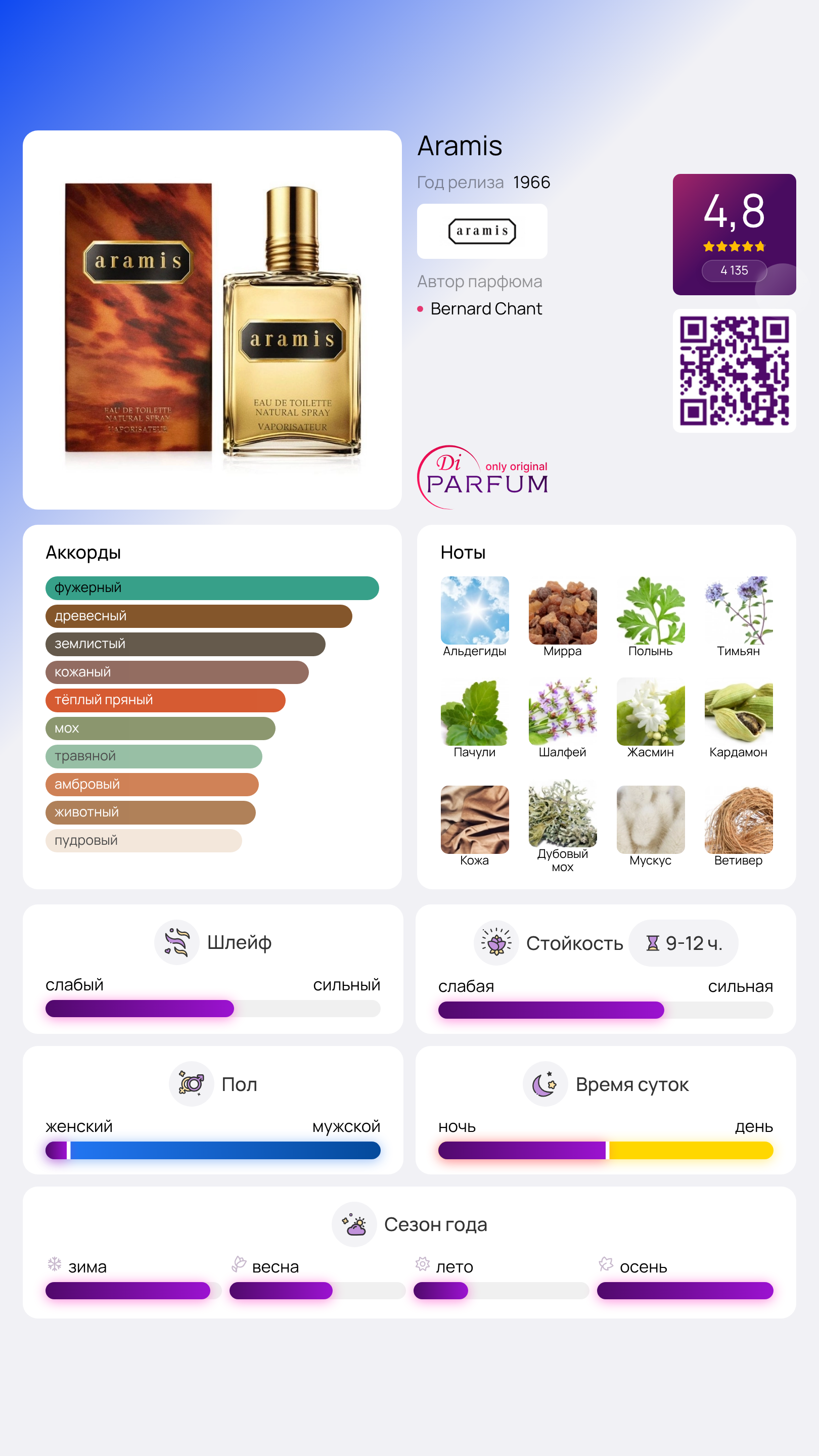 Парфюмерная композиция Aramis от одноименного бренда разработана для мужчин, которые предпочитают классический и строгий стиль в одежде. Этот соблазнительный и чувственный аромат всегда был в тренде. В верхних нотах проявляются мягкие оттенки мирта, чабреца и бергамотового масла, привезенного из Италии.