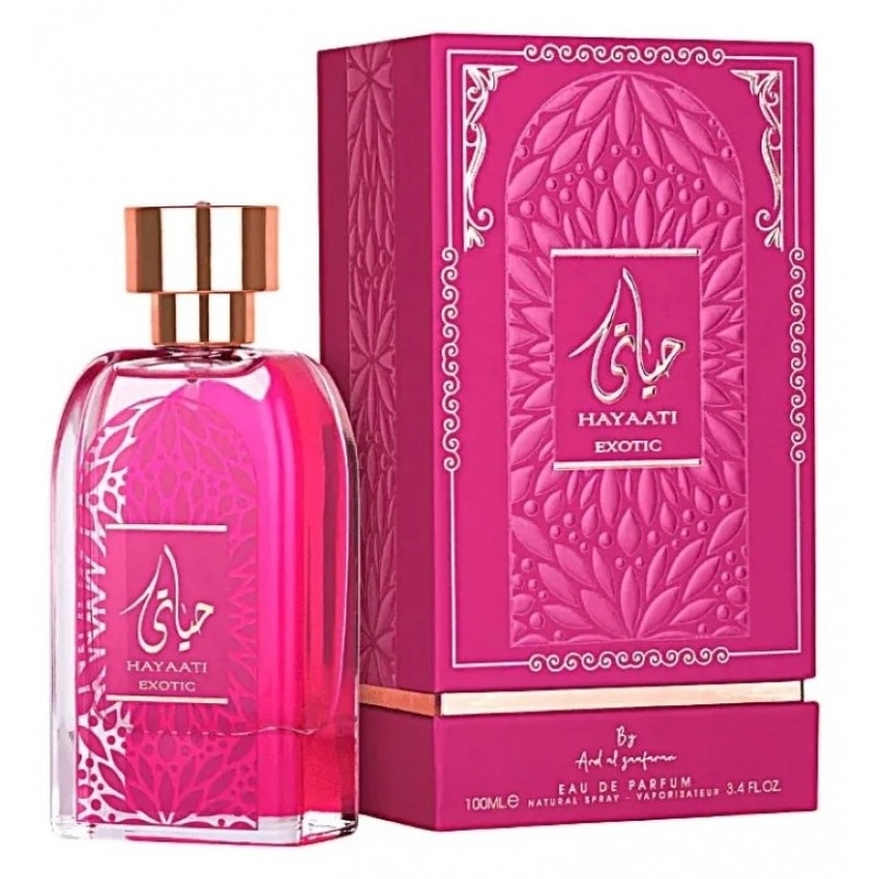 Hayaati Exotic от Ard Al Zaafaran – это новый эксклюзивный женский аромат, который был представлен в 2025 году. Он идеально подчеркивает яркость и индивидуальность современных женщин. Верхние ноты ароматической композиции радуют свежестью яблока, сицилийского бергамота, итальянского лимона и звездчатого аниса. В сердце аромата звучат слива, апельсиновый цвет и пряный кардамон, создавая особую гармонию и глубину звучания. Завершается композиция мягким мускусом, добавляющим тепло и уют.