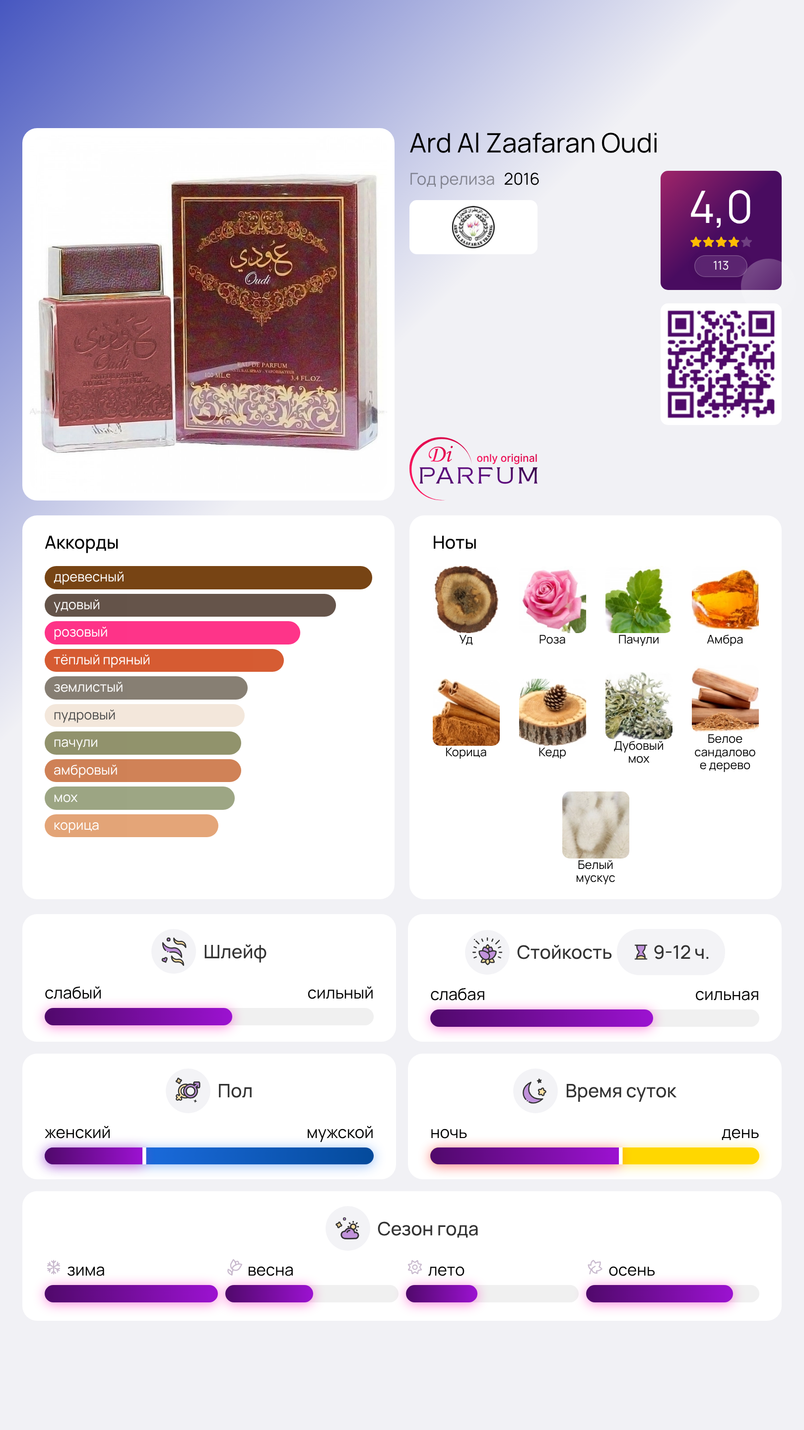 Ard Al Zaafaran Oudi полностью поглощает своей ольфакторной силой, не отпуская вас ни на мгновение и пробуждая самые сокровенные желания.