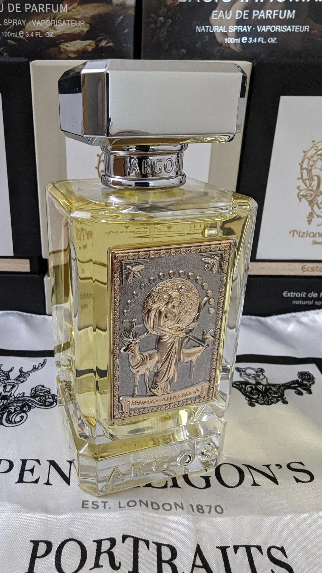 Эликсир Argos Brivido Della Caccia, обладающий романтичным древесно-восточным характером, создан под вдохновением богини Артемиды, покровительницы дикой природы и материнства. Она натягивает свой золотой лук и рассматривает окрестности с высоты песчаного холма. Лес наполняется звучанием диких животных, а ветры беспокойно колышут равнины. Тот, кто осмелился заглянуть на нее во время ее купания, был превращен в оленя.
