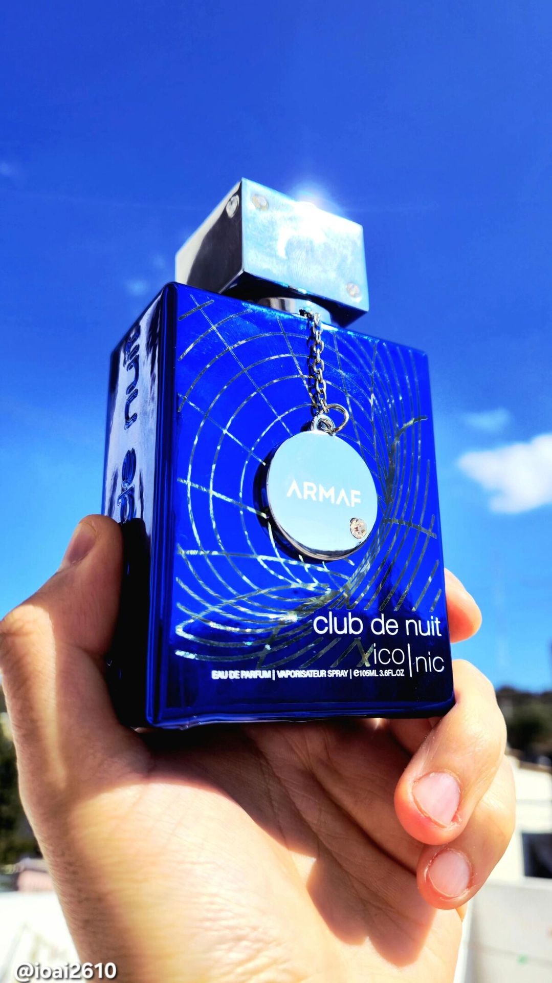 Сердце аромата наполнено сладостью дыни, приправленной остротой имбиря и мускатного ореха. Шлейф из смолистых нот формируется на основе древесины кедра и сандала, дополненного элементами дымного лабданума. Завершающие аккорды освежает композиция из травянистых пачулей и ориентальной амбры. Armaf Club de Nuit Blue Iconic, зарядивший бодростью, впервые был представлен в 2022 году на выставке BWME в составе ароматического трио. Флакон украшен ярким неоновым синим оттенком, который привлекает внимание.