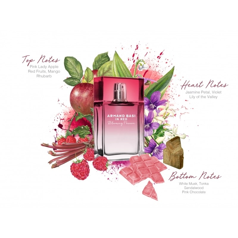 Новая композиция In Red Blooming Passion от Armand Basi, представленная в 2021 году, стала восьмым ароматом в линейке In Red, запущенной знаменитым испанским брендом в 2003 году. По информации из пресс-релиза, в этот раз в духах больше страсти и привлекательности, которые рассчитаны на любителей цветочных, фруктовых и гурманских нот.