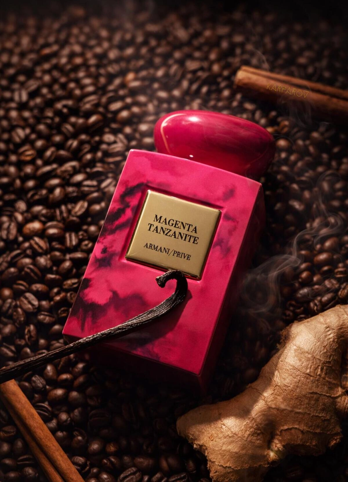 С течением времени греющее тепло обостряется благодаря насыщенному кофе с корицей и горьким бальзамическим миртом. Основа аромата наполняется благородной травянистой сухостью табака, где крепкое эспрессо переходит в мягкое какао, приготовленное из бобов тонка. Яркость и порой дикая энергетика композиции ARMANI Magenta Tanzanite смягчается утонченной и чувственной ванилью, которая рассыпается серебристой пыльцой, танцуя с сухим сирокко ветром.