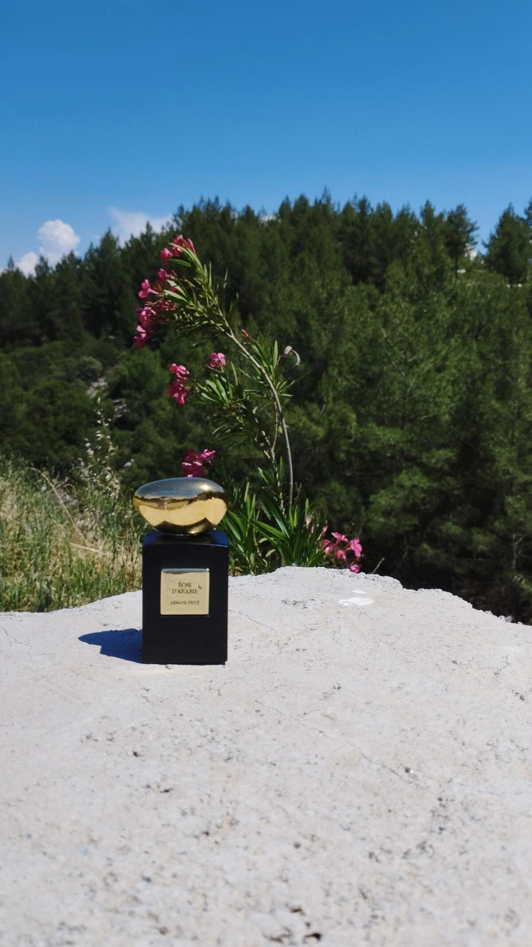 Rose d'Arabie сочетает в себе ноты дамасской розы, пачули, ванили и арабских древесных оттенков, создавая изысканное и уютное звучание.