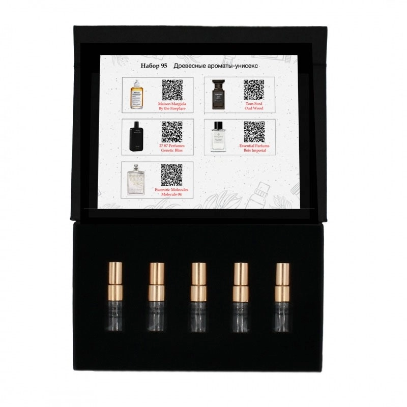 Комфортный набор AromaBox №95: Древесные ароматы-унисекс воссоздает теплую и мягкую текстуру дерева, что позволяет насладиться его бархатистыми нюансами. В числе любимых компонентов парфюмеров можно выделить благородный кедр, хвойную сосну, священный уд, дегтярную березу, сливочный сандал и мощный дуб. Эти ароматы могут передавать как свежий древесный спил, так и сухую древесину с лёгким дымным оттенком, создавая комфортный и уютный атмосферный кокон.