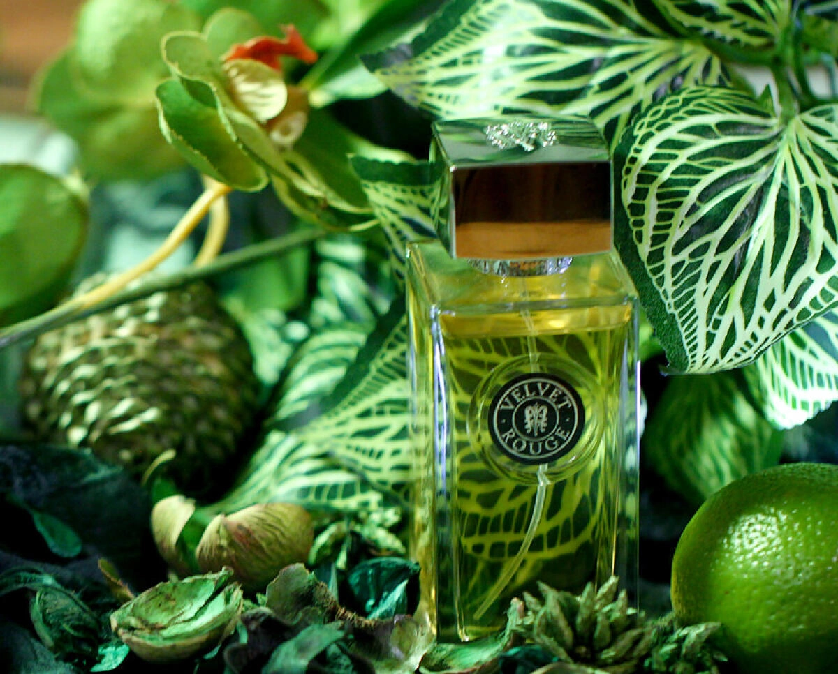 В композиции Velvet Rouge преобладает жгучий перец чили, который гармонично сочетается с нотами настоящего черного шоколада, представленными какао, а также с кофейными зернами, мускатным орехом, мандарином и ветивером. Эти ингредиенты создают атмосферу уюта кофейни или шоколадной мастерской.