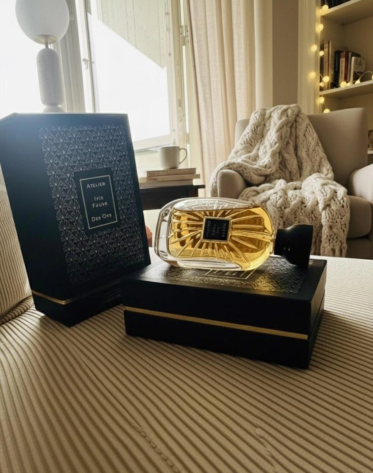 В линейке бренда Atelier des Ors можно найти парфюм под названием Коричневый Ирис или Iris Fauve. Парфюмер Мария Саламань создала первую аккорд, в котором основную ноту представляет ирис, окруженный корицей и бергамотом.