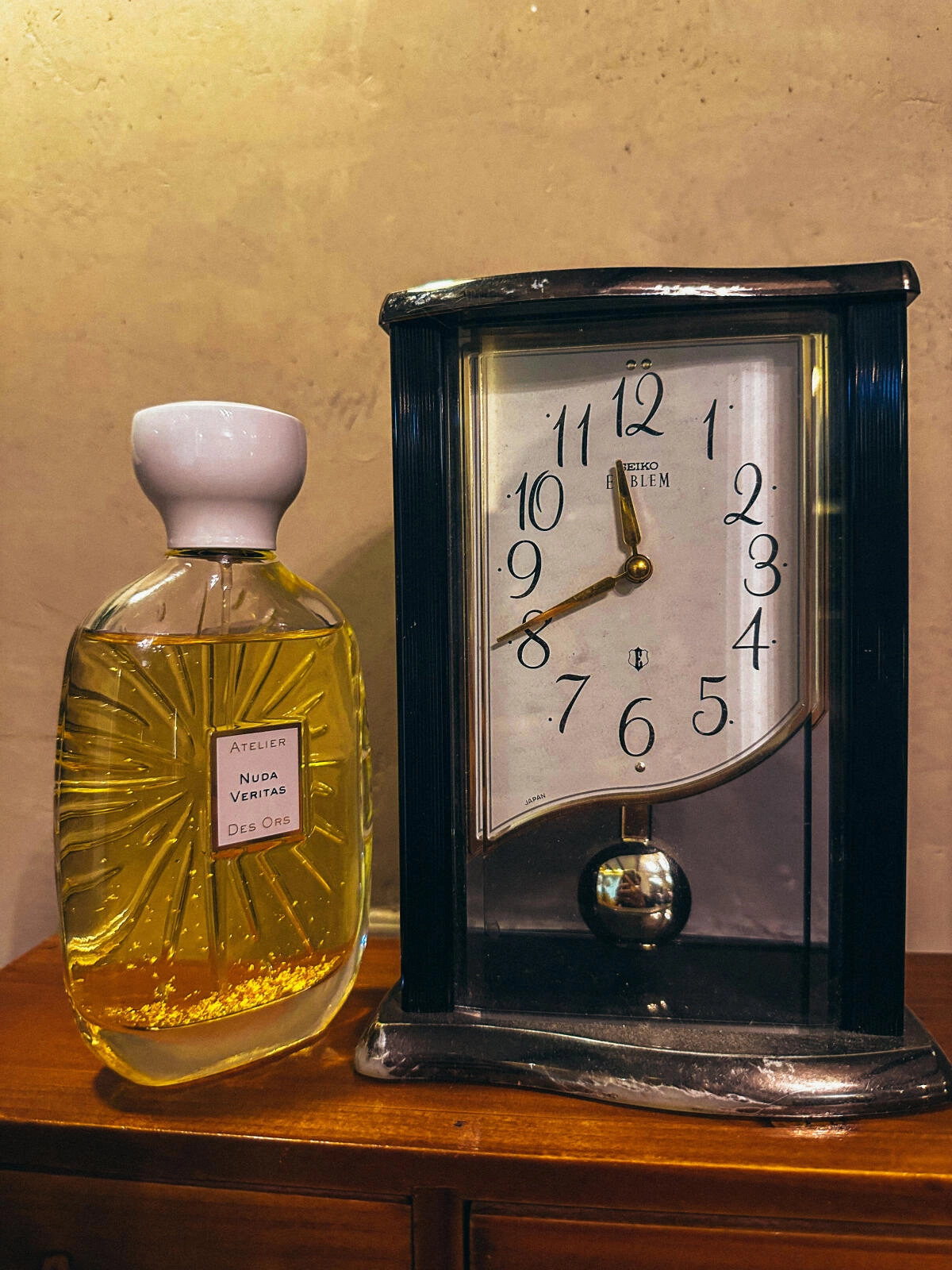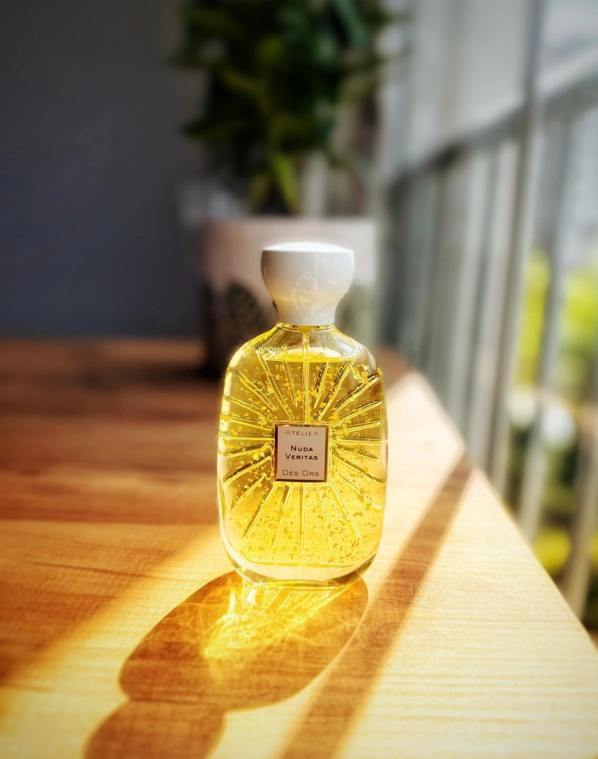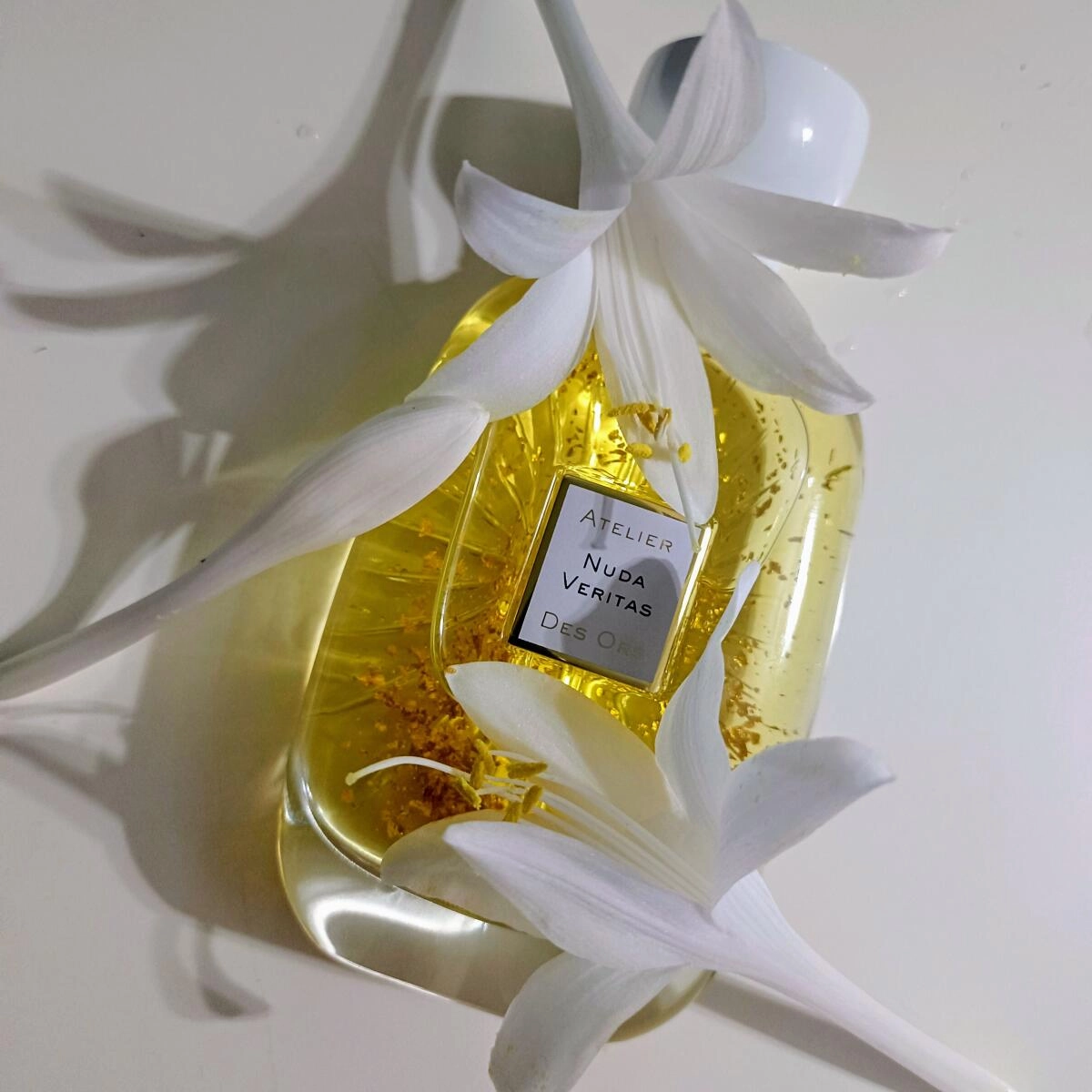 Чистота композиции Nuda Veritas от Atelier des Ors отражает беззаботные мгновения жизни. Этот аромат был представлен в 2018 году как часть трио White Collection, посвященного утонченной красоте простых радостей. Во флаконе, излучающем свет, сверкает золотистый шиммер.