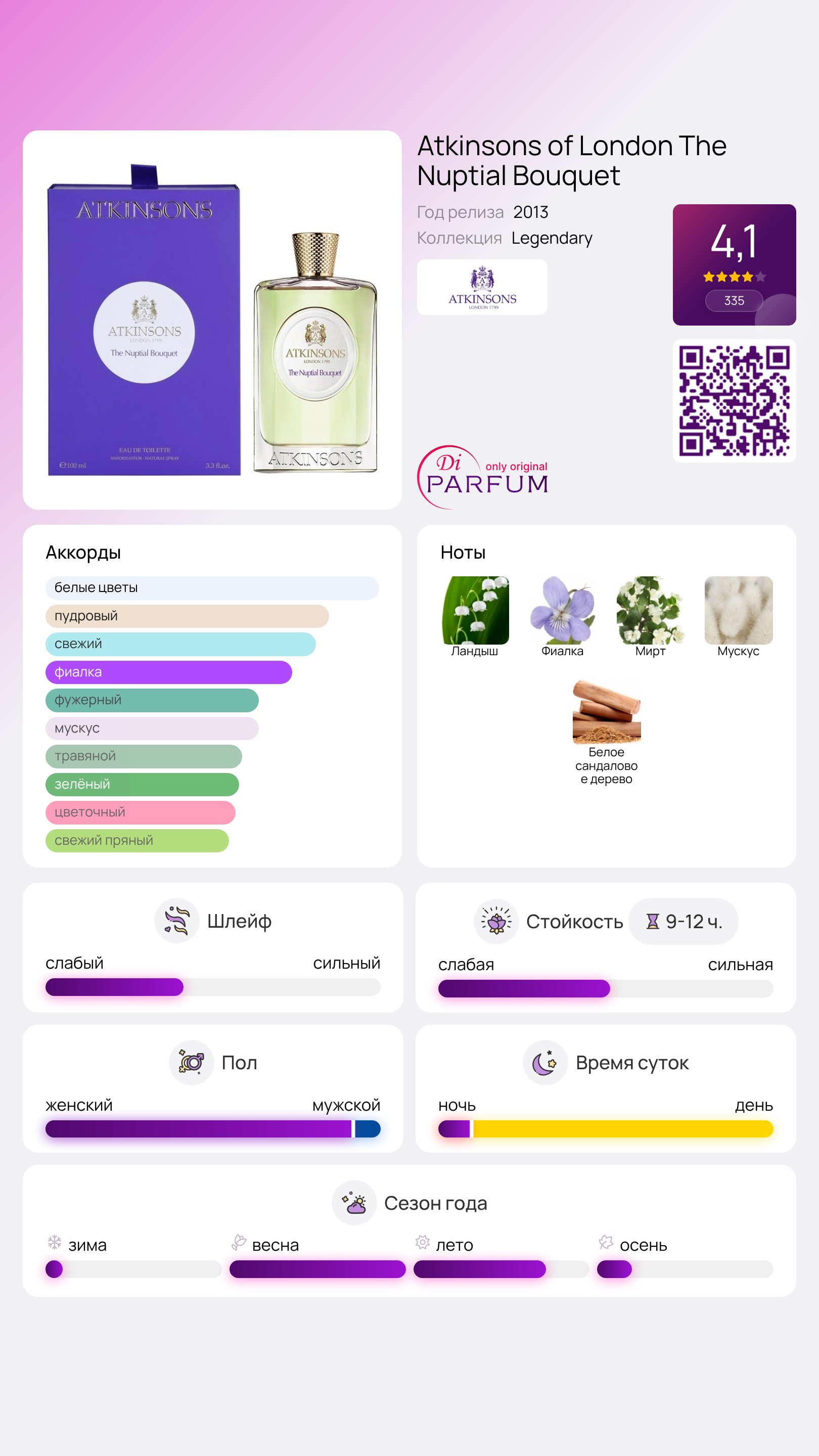 Парфюм для женщин The Nuptial Bouquet от Atkinsons представляет собой цветочно-древесно-мускусный аромат, символизирующий верность, чистоту и настоящее семейное счастье. Каждая девушка мечтает поймать букет невесты, и этот аромат словно воплощает эти мечты.