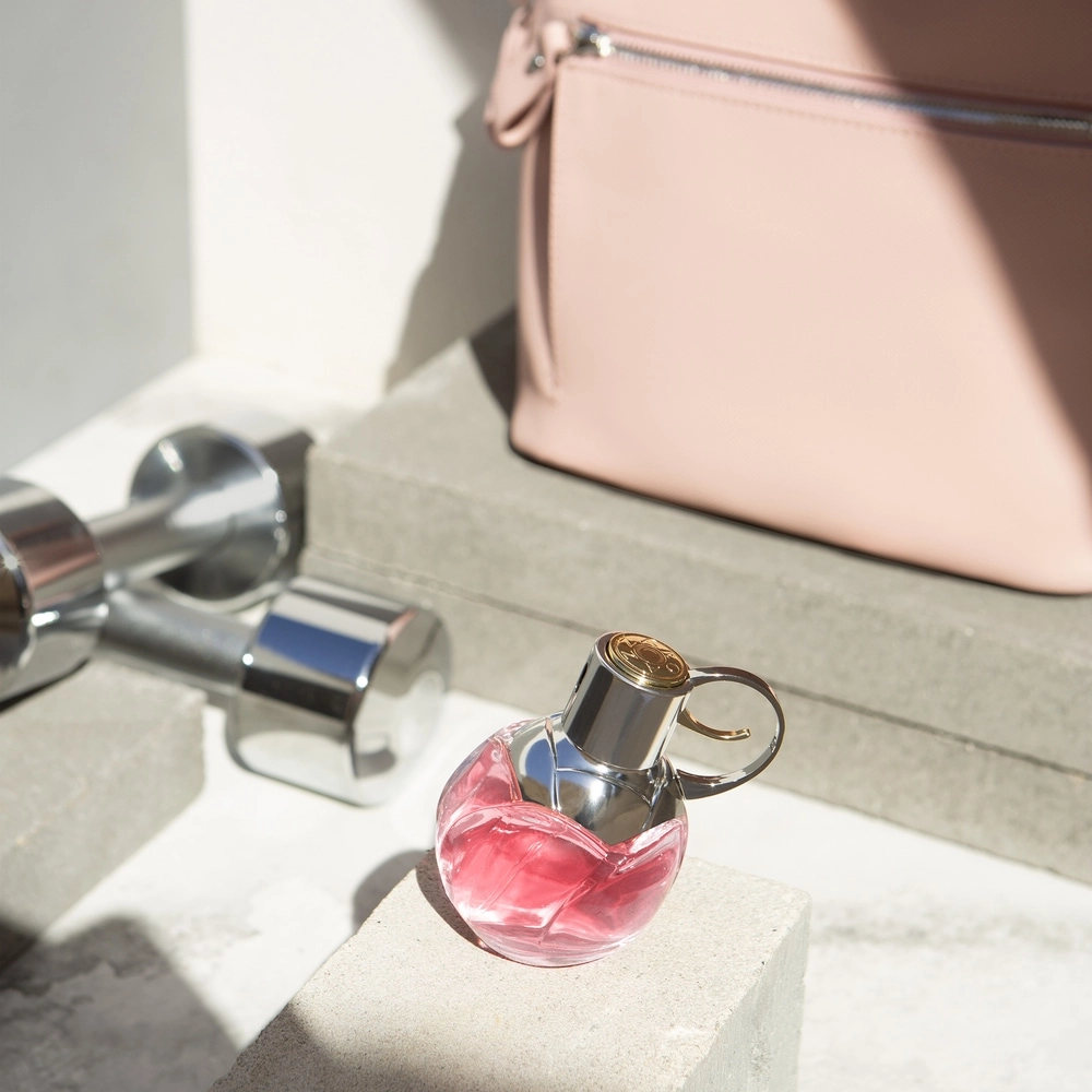 Рекламный ролик наполнен духом соперничества, но в нем присутствует игривость и эротический подтекст, а также взаимное влечение. Элегантный флакон, выполненный в холодных и нежных тонах, напоминает эликсир розового кварца, заключенный в стеклянную упаковку с металлическими элементами, которые похожи либо на гранату, либо на перевернутый бутон розы.