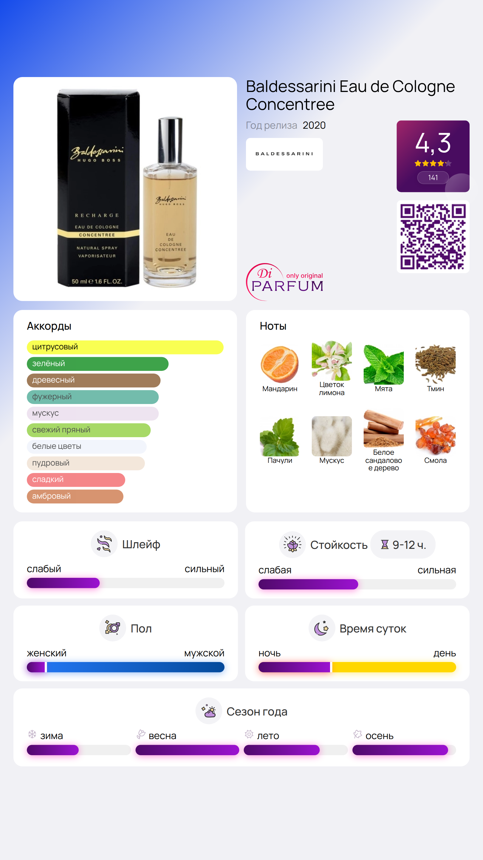 Парфюмерные линии немецкого бренда Hugo Boss всегда пленяют сердца любителей ароматов и быстро становятся классическими. Так произошло и с насыщенным, теплым ароматом Baldessarini Eau de Cologne Concentree, который был представлен в 2002 году и быстро завоевал место в коллекциях поклонников изысканных люксовых парфюмов, идеально дополняющих стильные и роскошные образы.