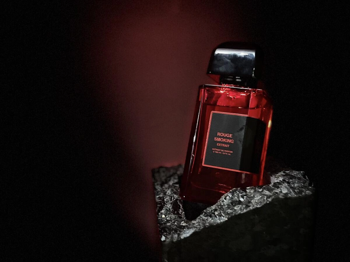В верхних нотах Rouge Smoking Extrait смешиваются вишня, миндаль, розовый перец, красный мандарин и бергамот. Сердце аромата раскрывается свежими и сладкими аккордами молока, перуанского бальзама, бобов тонка и испанского лабданума. База включает в себя уд, ром, амброксан, пачули, абсолют ванили, амбру, бензоин и сиам, что создает глубокий и стойкий след, оставляя незабываемое впечатление.