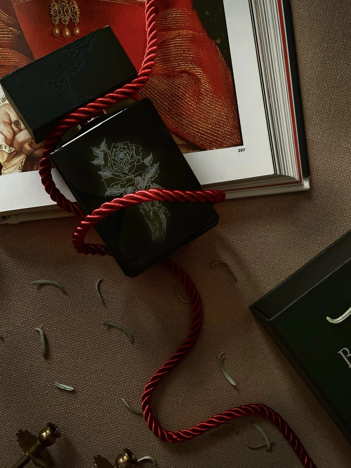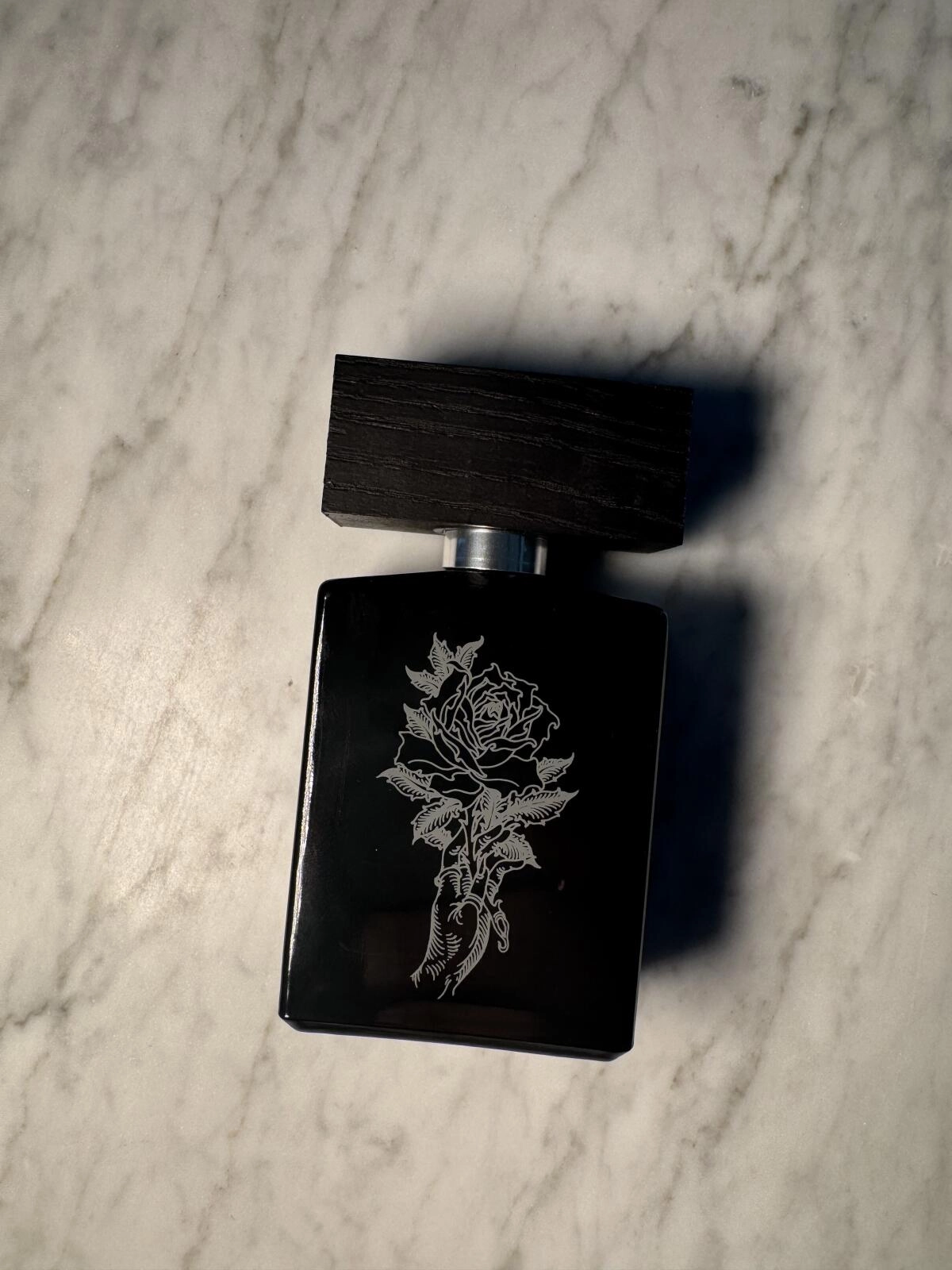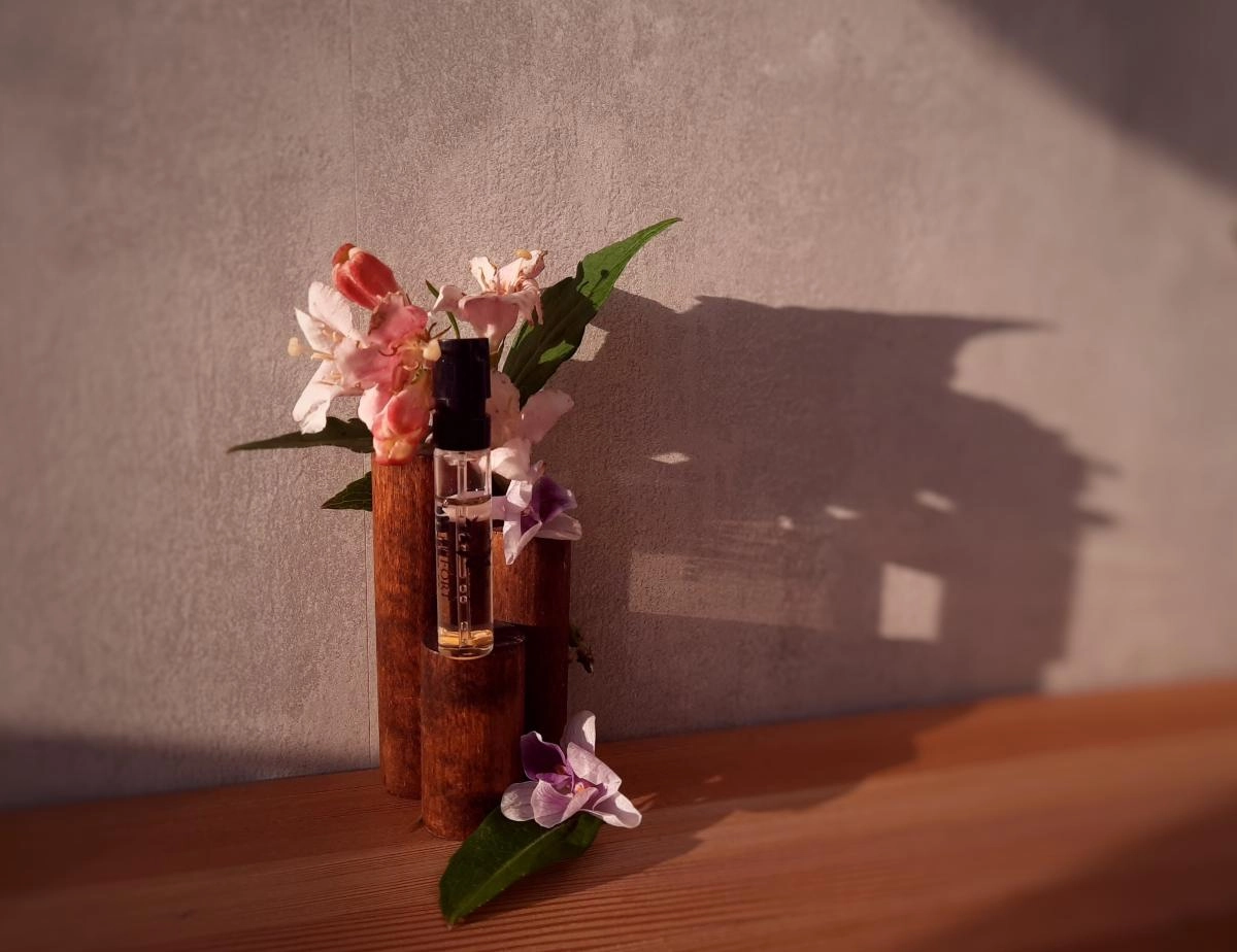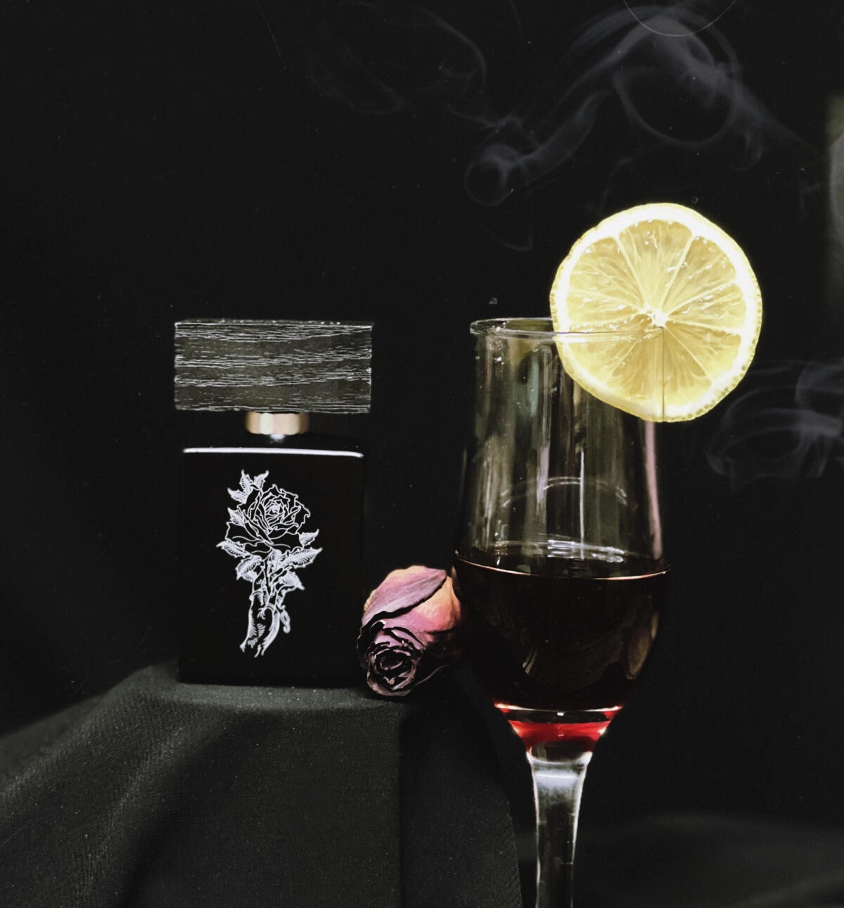 Насыщенная алая роза окружена крепкими алкогольными нотками, которые создают ассоциации с глинтвейном, перетянутым гвоздикой. Зеленоватая роза с нотками фруктов и крови возбуждает умы на фоне озоново-свежего воздуха и благовония ладана.