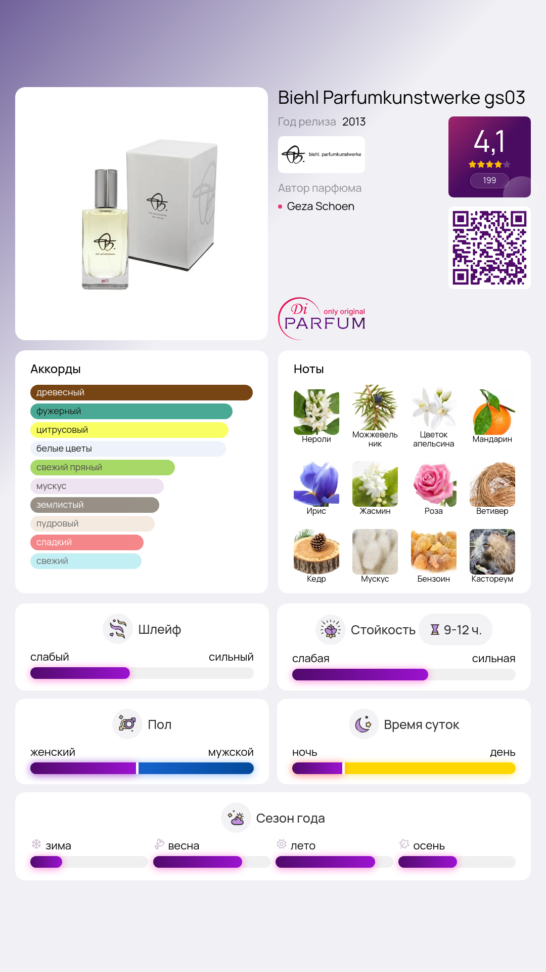Гармония этих нот делает gs03 идеальным выбором для любого времени года и создает атмосферу утонченности и элегантности. Подарите себе или своим близким аромат, который станет неотъемлемой частью вашего стиля.