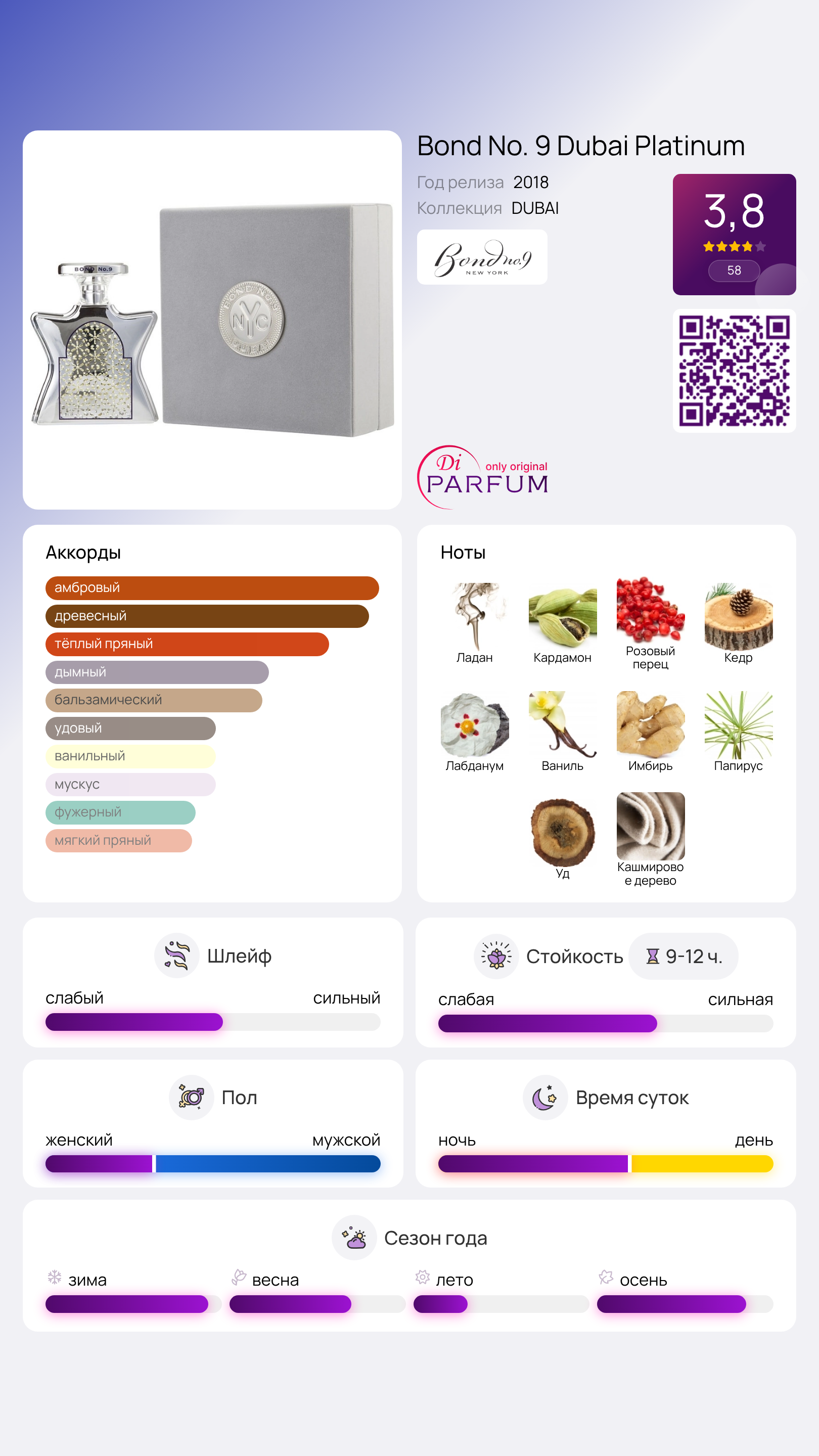 Dubai Platinum прекрасно подойдёт для вечерних мероприятий и особых случаев, благодаря своей выразительности и стойкости. Этот аромат станет отличным дополнением к вашему образу, добавив ему шарм и загадочность.