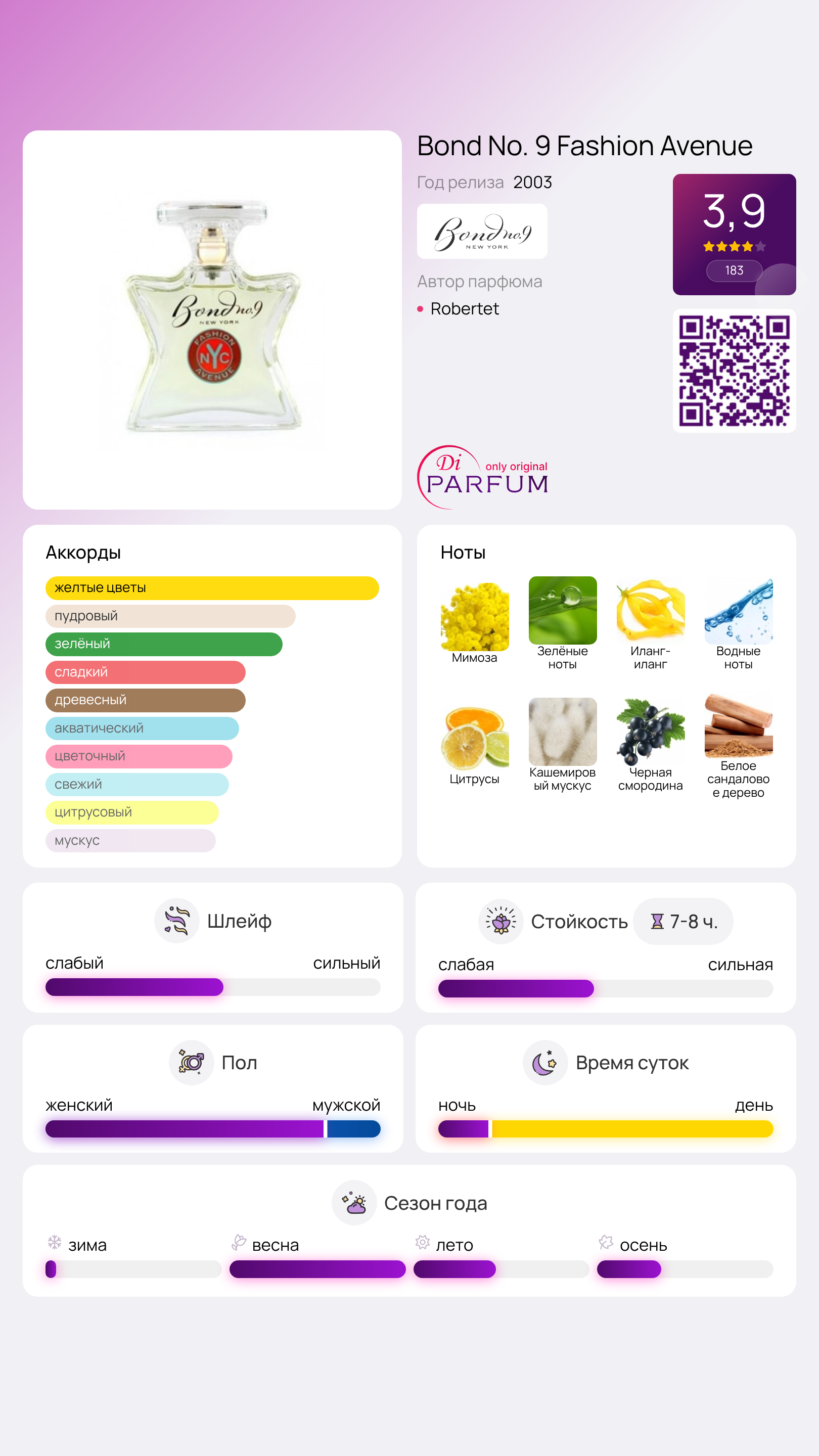 Fashion Avenue от Bond No 9 – это элегантный цветочный аромат для женщин, который был представлен на рынке в 2003 году. За создание этого произведения искусства стоит парфюмер Robertet.