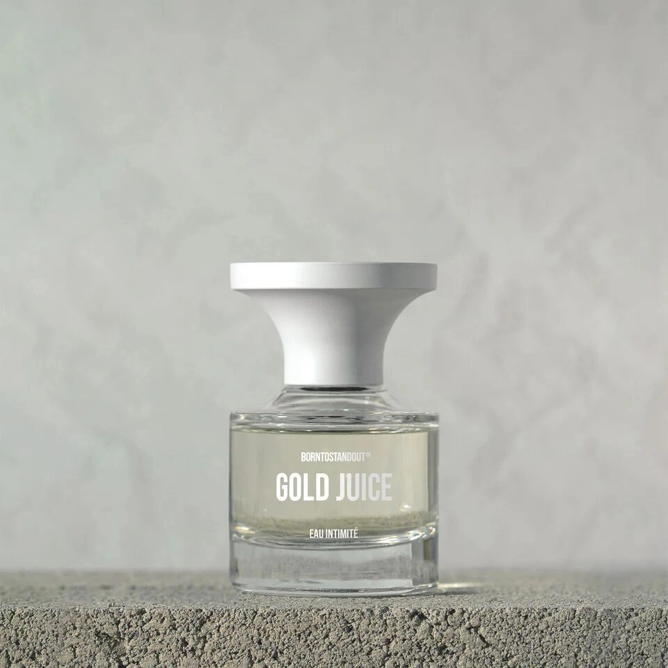 Gold Juice от BORNTOSTANDOUT® — это новый Floral Fruity Gourmand аромат для мужчин и женщин, представленный в 2025 году. Автором композиции является парфюмер Margaux Le Paih Guérin. В верхних нотах звучат манго, дуриан и ревень; в средних нотах раскрываются османтус, белые цветы и солнечные ноты; а базовые ноты состоят из карамели, гваяка и миндаля.