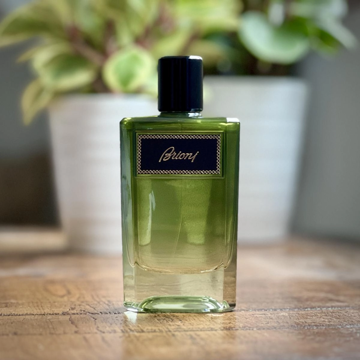 Элегантный шлейф излучает аристократическое спокойствие, охватывая ароматы кожаного олибанума, смолистой серой амбры и сливочного сандала. Неожиданные ноты Eau de Parfum Essentiel от Brioni дарят чувство умиротворения. Данная парфюмерная вода была выпущена в 2023 году и входит в состав коллекции. Флаконы градиентного зеленого цвета выполнены из итальянского стекла с утолщенным дном и украшены золотистыми штрихами.