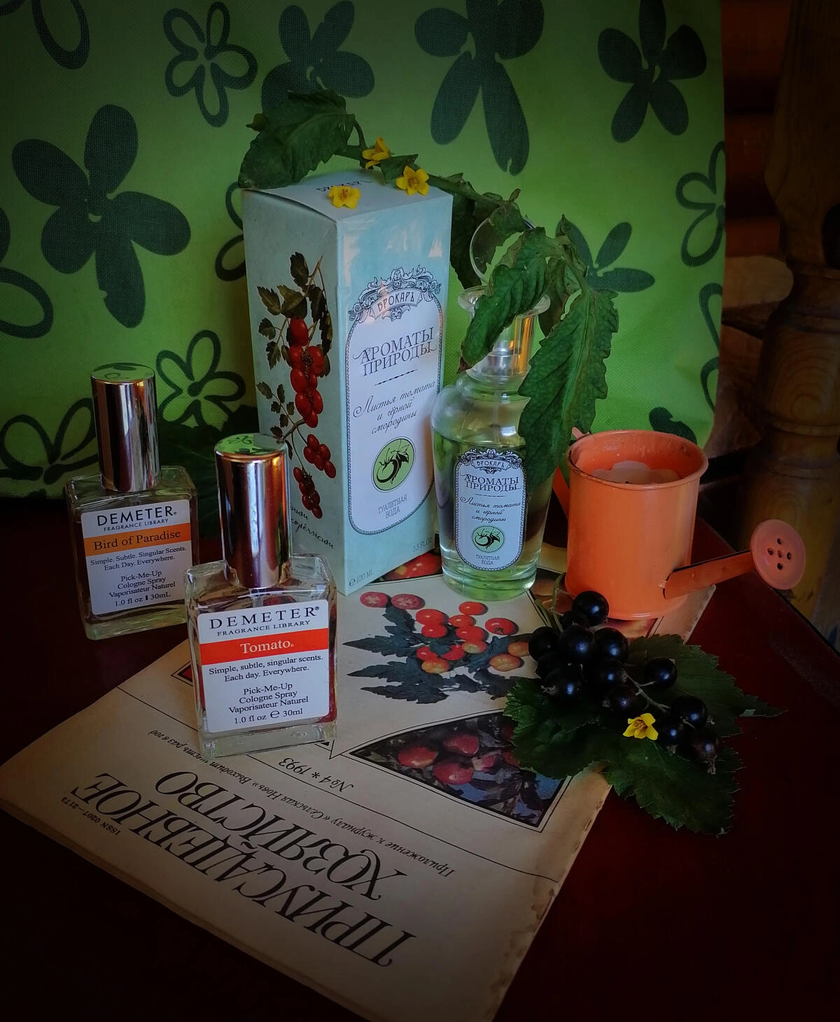 Дополняя общее звучание, чабер, запаренный в чае, и охлаждающая мята создают живое сочетание с томатной ботвой. В аромате переплетаются насыщенные ноты жасмина с горчинкой и манящий мускус. Эликсир Листья томата и черной смородины был выпущен брендом Brocard в 2017 году в рамках серии «Ароматы природы» и представлен в элегантном флаконе, который напоминает о винтажных кувшинах из аптекарских лавок.