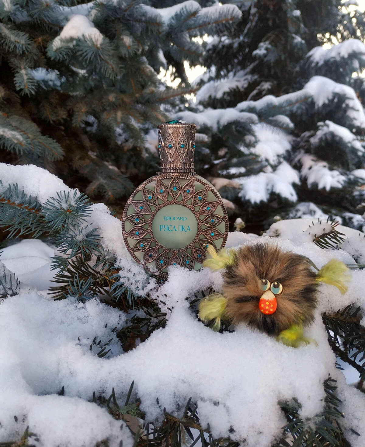 Запах Brocard Rusalka (Русалка) представляет собой цветочно-зеленую композицию, входящую в «Русскую коллекцию», посвященную сказочным героям. Эта парфюмерная работа Джулии Родригес Пастор была выпущена в 2022 году. Однако стоит отметить, что она не имеет отношения к «западной» интерпретации русалки от Андерсена, а погружает нас в мир славянской легенды о девушке, утопленной в водах. Находится ли она в состоянии абсолютного счастья или же символизирует смерть – остается загадкой. Но атмосфера водной стихии, окруженной мистикой, в аромате передана чрезвычайно точно.