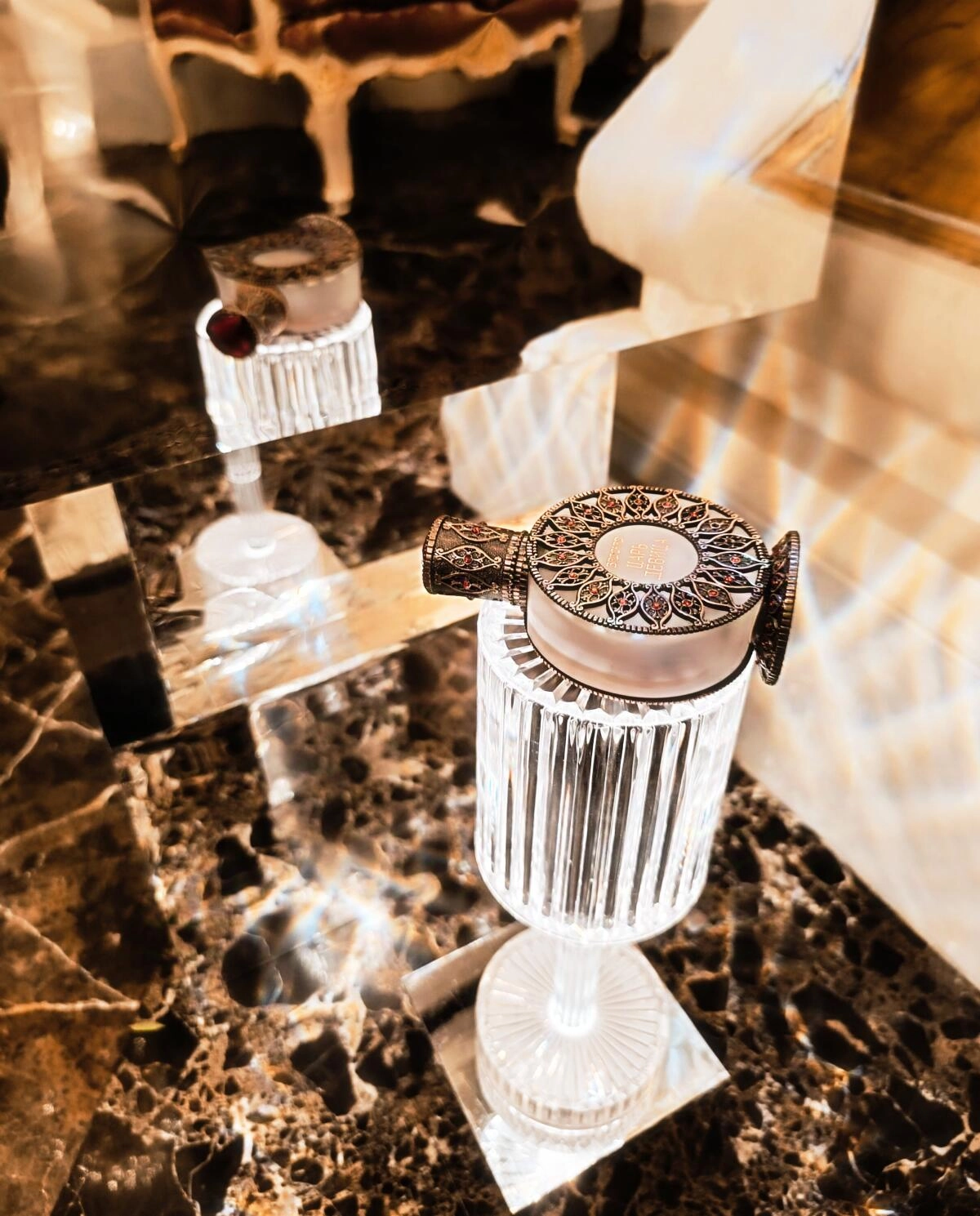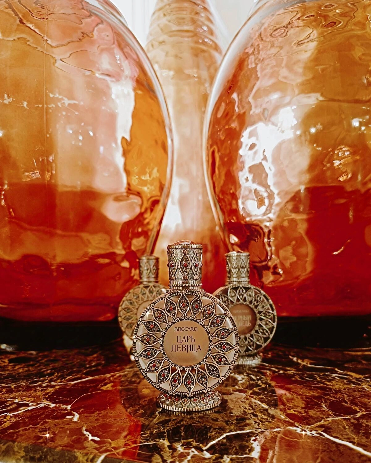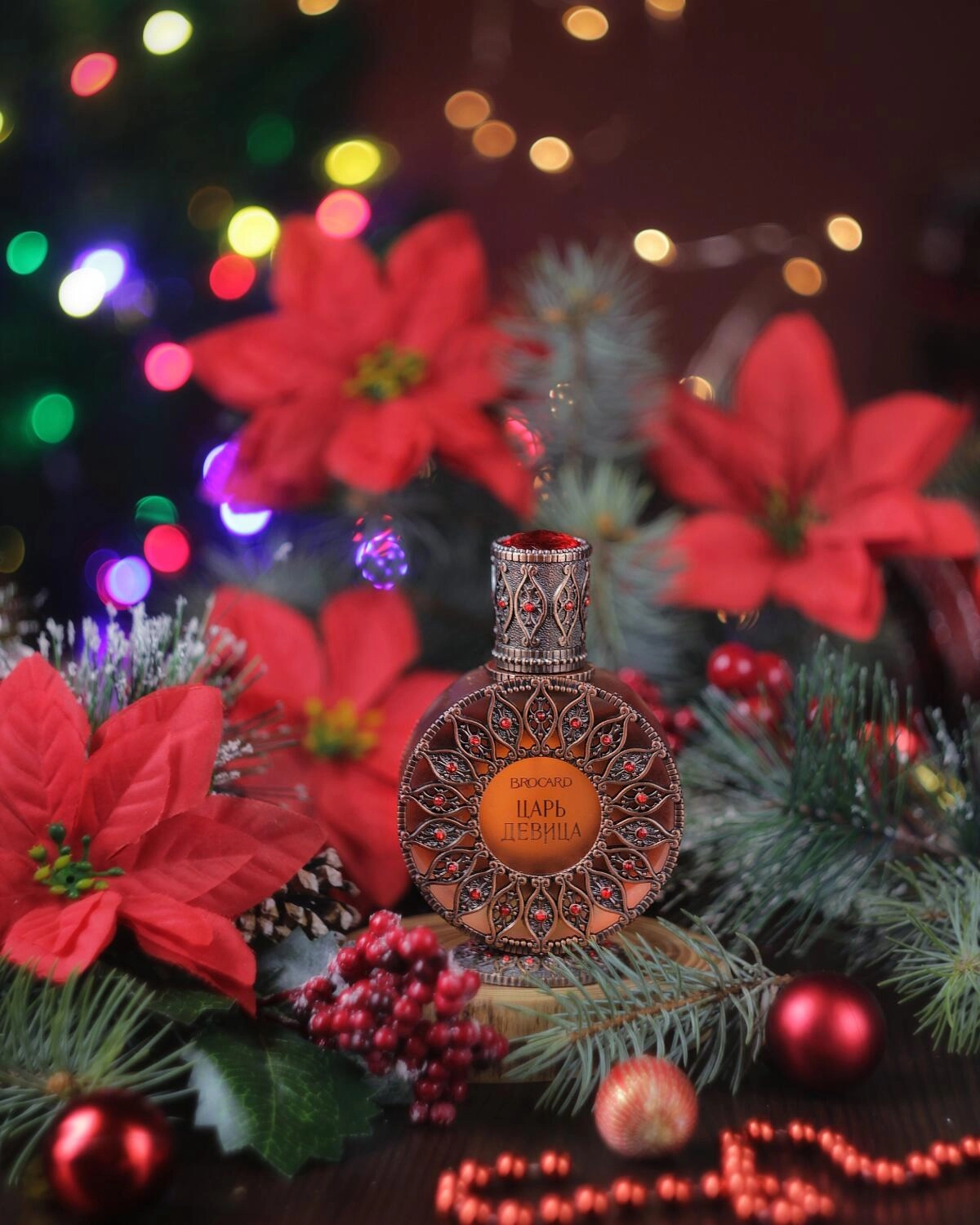 База аромата отличается мягкостью, где сливочный сандал и томный мускус с амбровым теплом формируют прекрасный шлейф. Упаковка Brocard The King Princess (Царь Девица) выглядит как из сказки, в ней кажется заключено таинственное зелье или божественная вода. Это массивный флакон из матового стекла, украшенный яркими красными элементами в виде ювелирной конструкции.