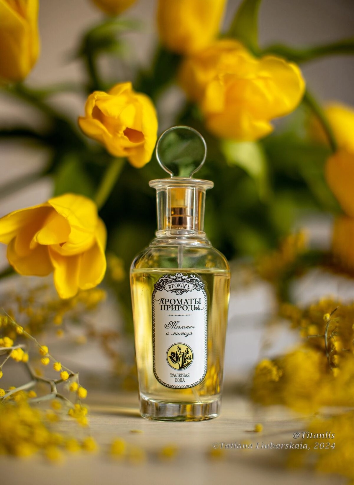 Яркая цветочно-зеленая парфюмерная композиция Brocard Тюльпан и Мимоза символизирует наступление весны и первую любовь. Весенний дух подчеркивается золотистым облаком мимозы, а рядом располагается крупный букет тонких нежно-розовых тюльпанов. Эти цветы неизменно становятся украшением каждого дома в день 8 Марта.