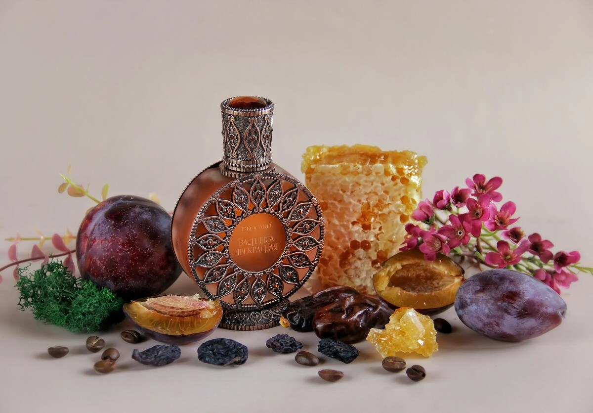 Этот парфюм переносит нас в атмосферу лесной опушки, освещенной солнечными лучами, где смелая Василиса отправляется на поиски волшебного зелья, выходя из темного леса. Ольфакторная пирамида формы включает в себя фруктовые и цитрусовые ноты, а также акценты меда и кофе, дополненные древесно-смолистыми нюансами.
