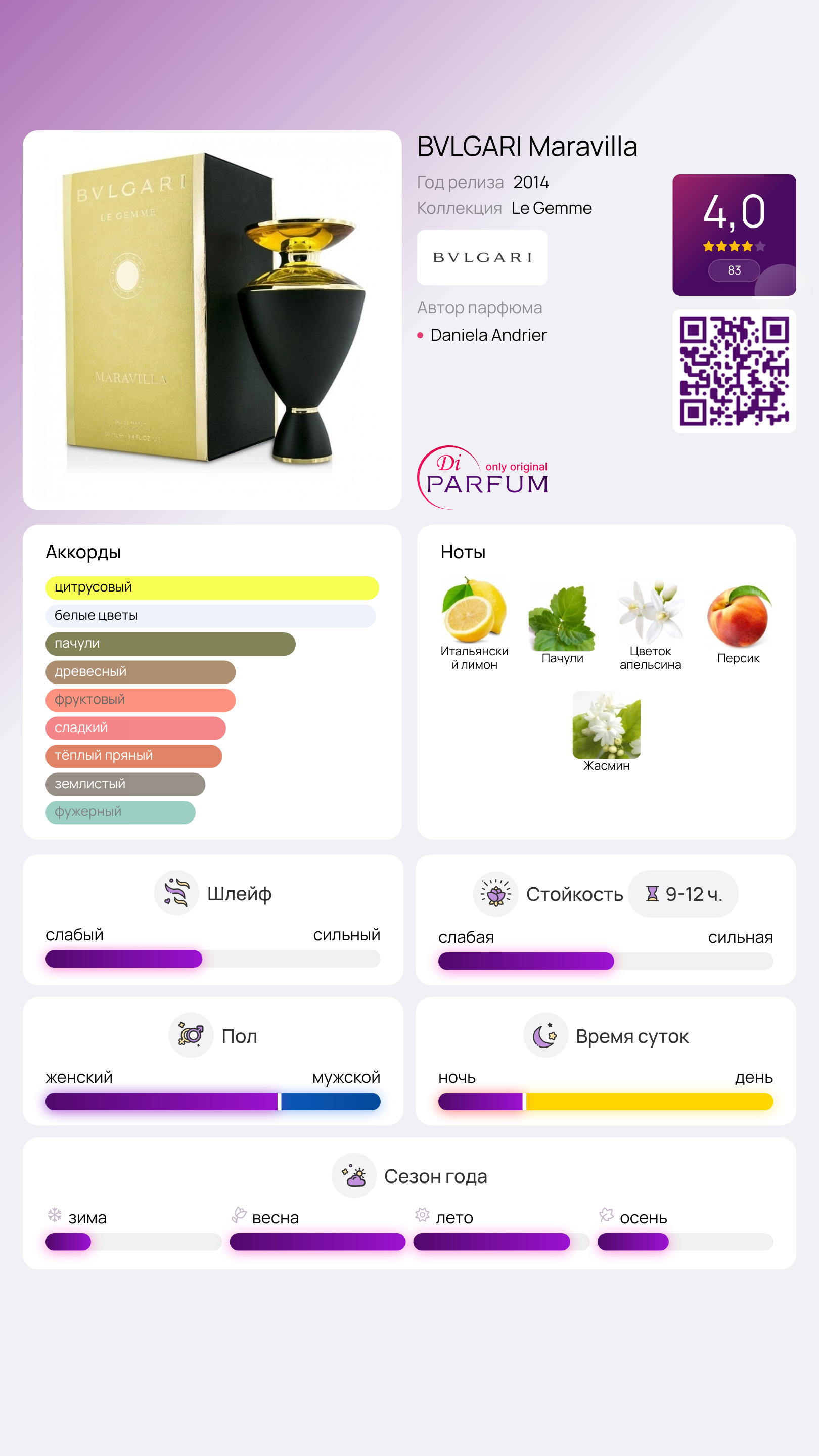 Maravilla от Bvlgari — это цветочно-фруктовый аромат для женщин, который был представлен в 2014 году. За созданием этого уникального парфюма стоит талантливый парфюмер Daniela Andrier.