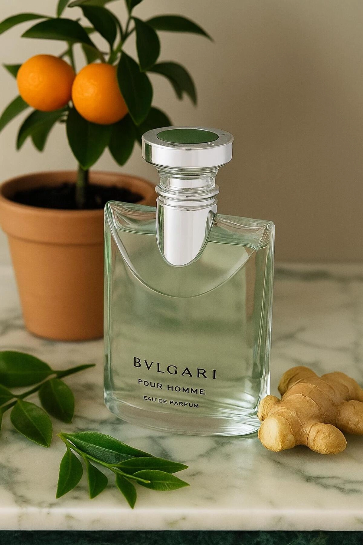 Начальные ноты открываются свежим и почти прозрачным аккордом дарджилингского чая, обладающего травянистой терпкостью и лёгким цветочным оттенком. Добавление имбиря вносит едва заметную пряную ноту, оживляя первый вдых. В сердце аромата переливаются глубокие, почти дымные ноты черного чая, соединяющиеся с древесной теплотой гваякового дерева — этот дуэт вызывает ассоциации с уютным кабинетом, где важные решения принимаются за непринужденным чаепитием. Элементы аромата лишены тяжести, а воплощают благородную простоту и ясные линии, как в самой архитектуре дома BVLGARI.