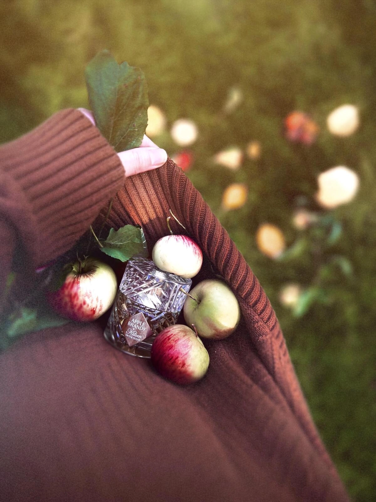 Яблочный бренди, крепкое осеннее угощение, создает атмосферу уюта, окруженную фруктами в корзине. Аромат яблок напоминает восковые плоды и сладкий мед. Композицию дополняет ореховый бисквит, облитый ванильным сиропом, a рома привносит древесную выразительность. Вы словно находитесь у камина, с бокалом в руке, а воздух наполняется сладостным благоуханием: кедровая смола, влажные листья и земляной мох.