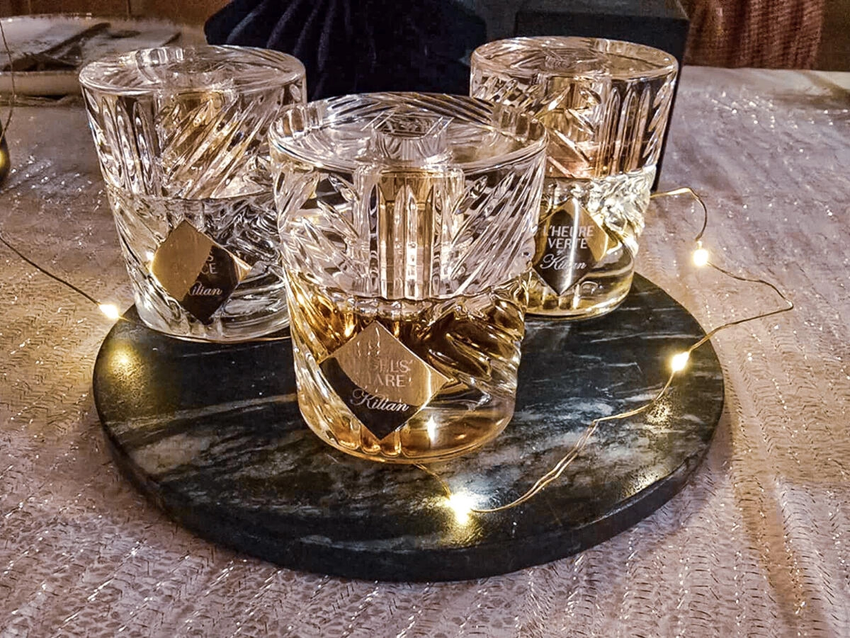 Парфюм By Kilian L'Heure Verte, обладающий фужерным древесным ароматом, стал первой работой парфюмера Матье Нардена в партнерстве с известным французским брендом. Этот аромат вдохновлен ночным Парижем и назван в честь традиционного французского шота, который представляет собой абсент с небольшим добавлением сахара, подаваемый перед началом вечеринки. Когда его перемешивают, он приобретает пастельно-зеленый оттенок, что также отражается в дизайне его хрустального флакона, стилизованного под коньячный бокал.