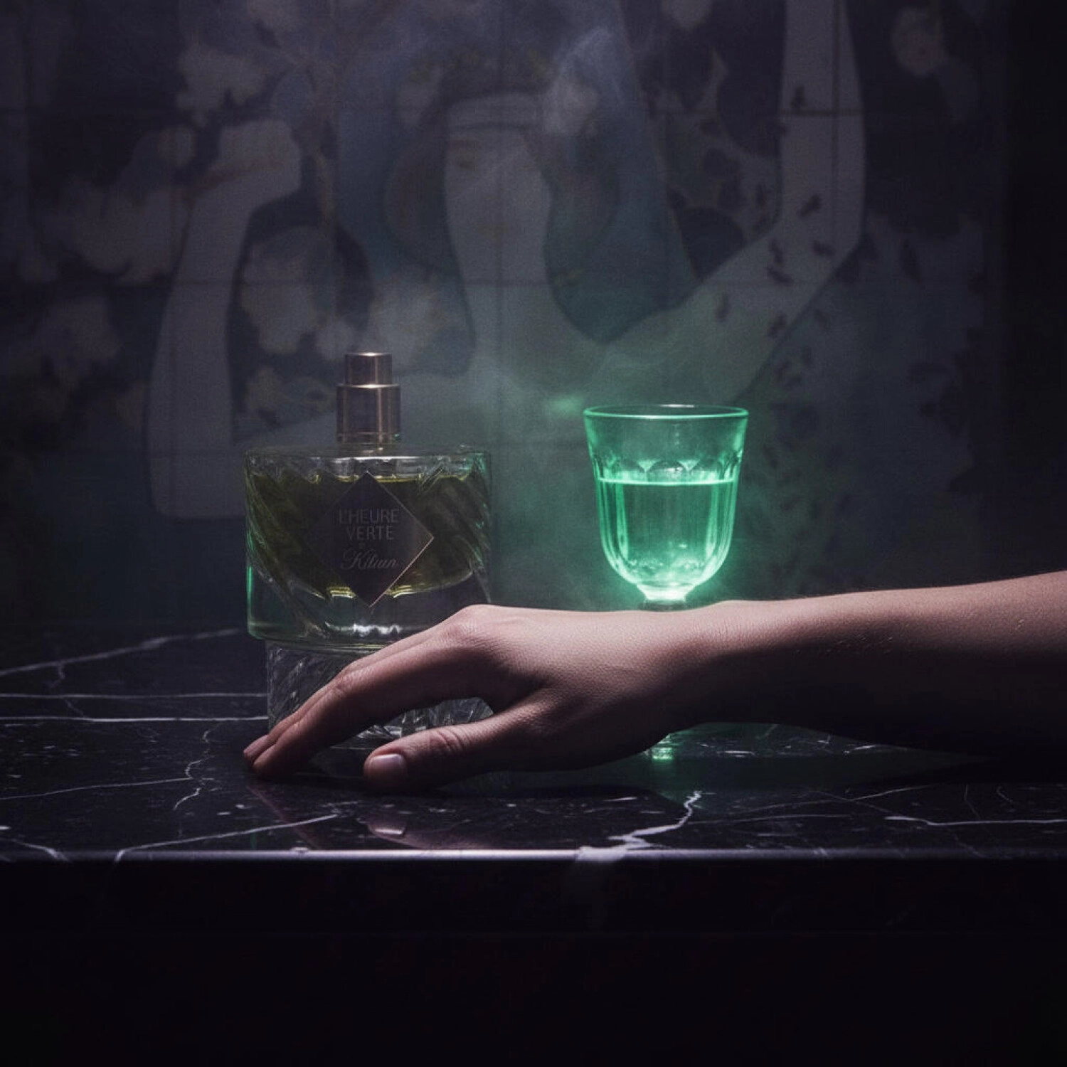 Парфюм By Kilian L'Heure Verte, обладающий фужерным древесным ароматом, стал первой работой парфюмера Матье Нардена в партнерстве с известным французским брендом. Этот аромат вдохновлен ночным Парижем и назван в честь традиционного французского шота, который представляет собой абсент с небольшим добавлением сахара, подаваемый перед началом вечеринки. Когда его перемешивают, он приобретает пастельно-зеленый оттенок, что также отражается в дизайне его хрустального флакона, стилизованного под коньячный бокал.